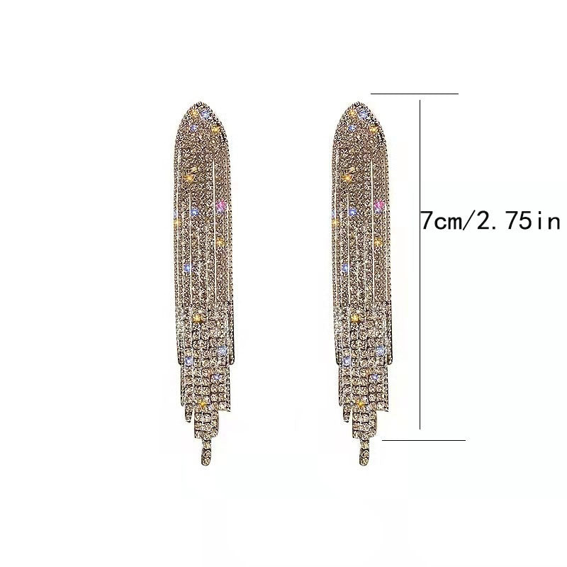 Add a touch of glamour with these exaggerated long tassel earrings featuring rhinestones. Perfect for accessorizing your outfit.