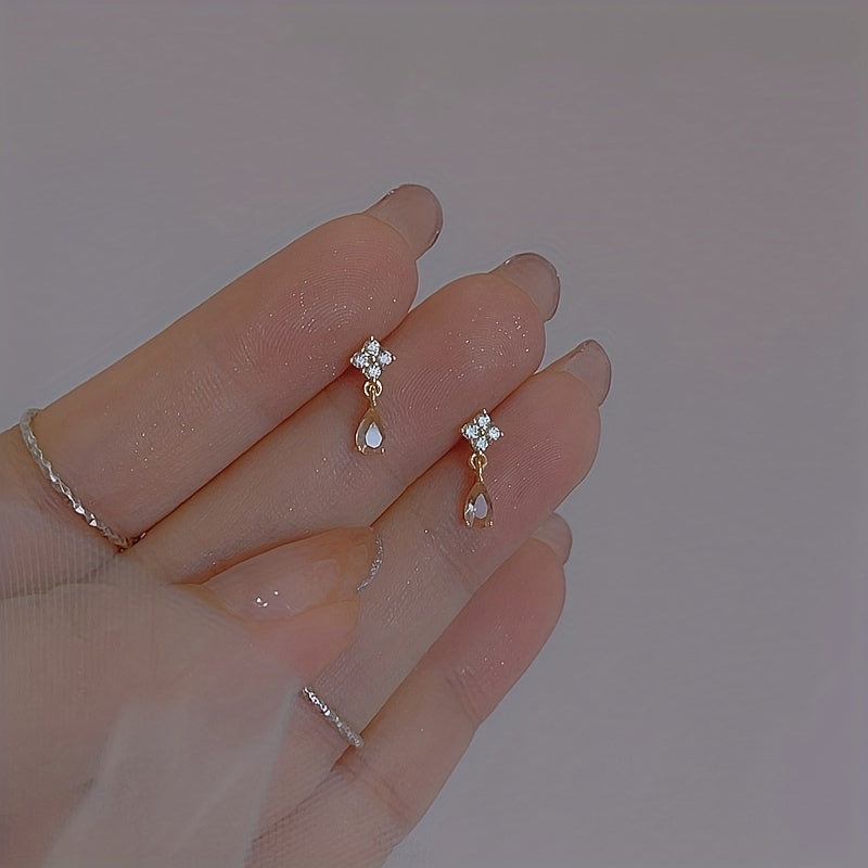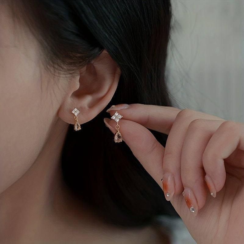 These elegant earrings feature rhombus rhinestone dangle design with tea teardrop zircon pendants, perfect for adding a touch of sparkle to your outfit.