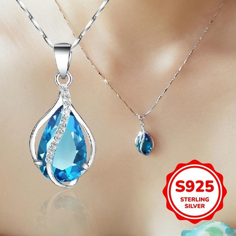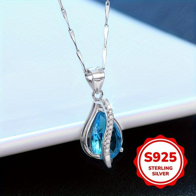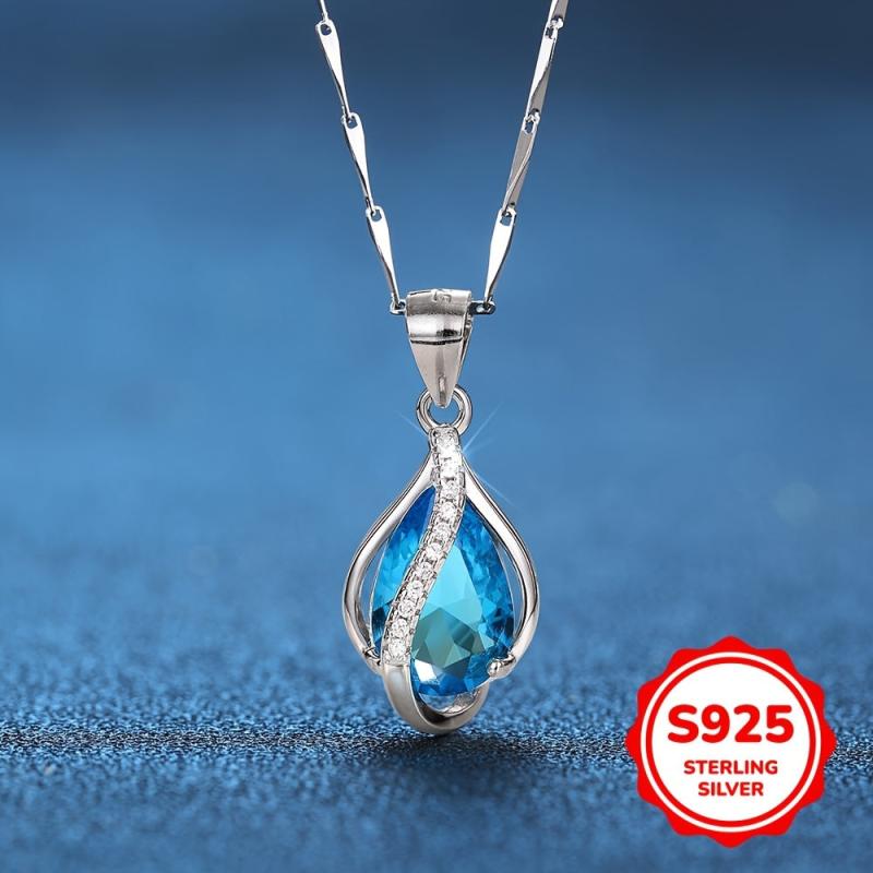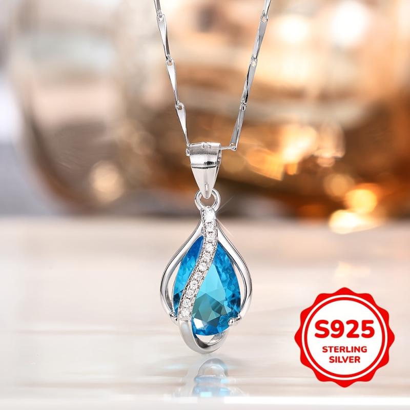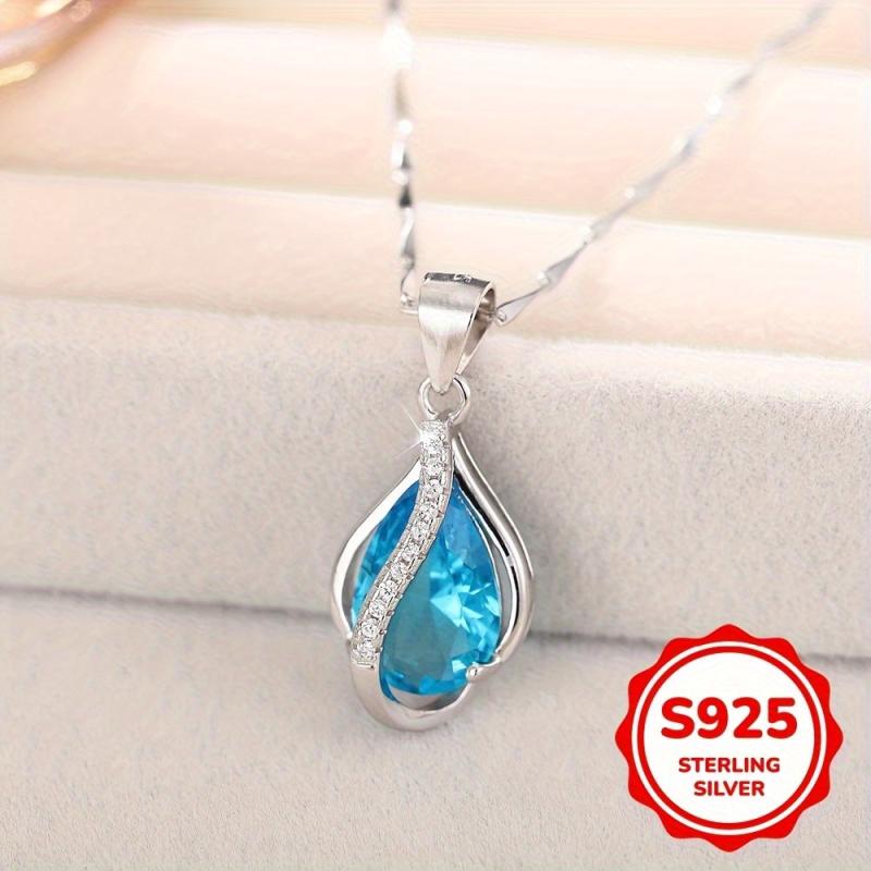 This elegant necklace features a teardrop-shaped March birthstone pendant crafted in 925 sterling silver. It is a perfect piece of jewelry for women and teens.