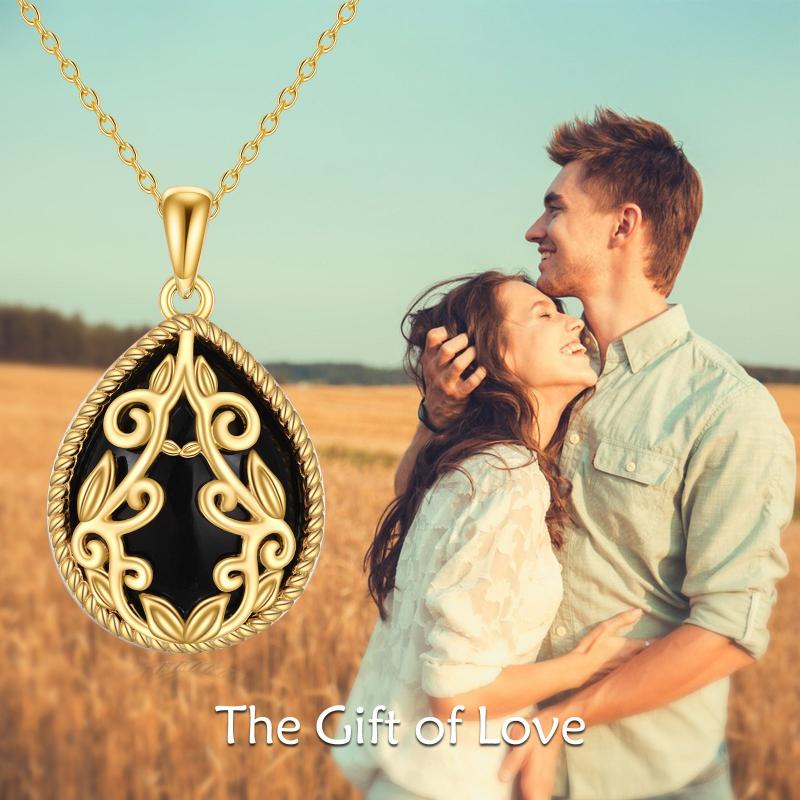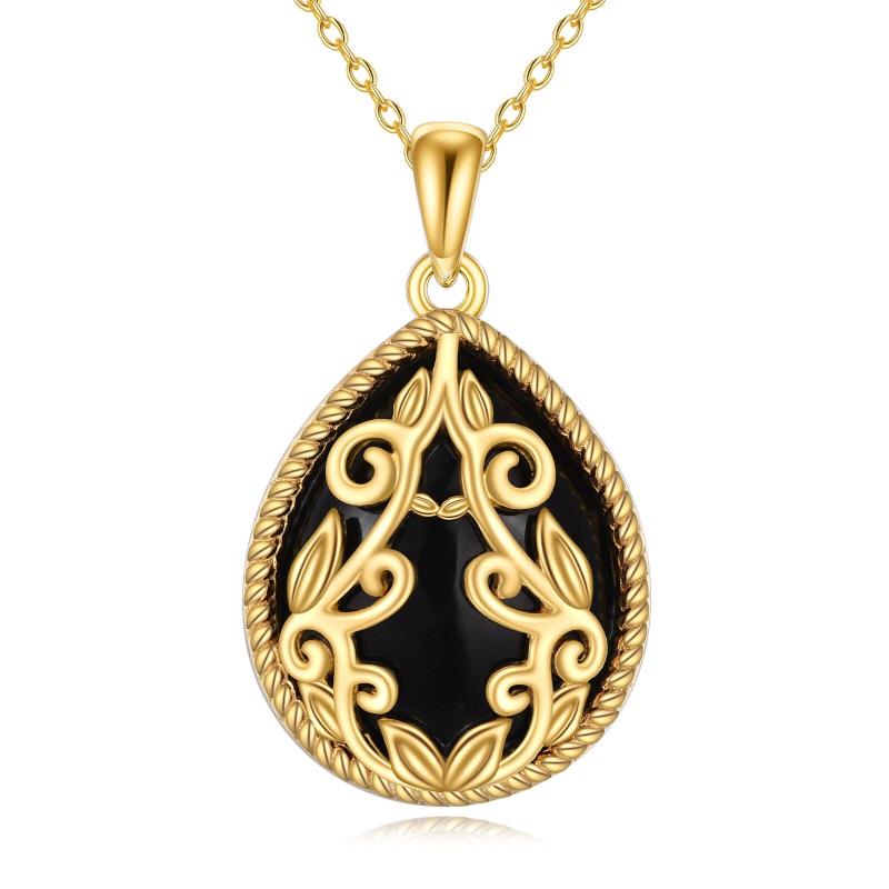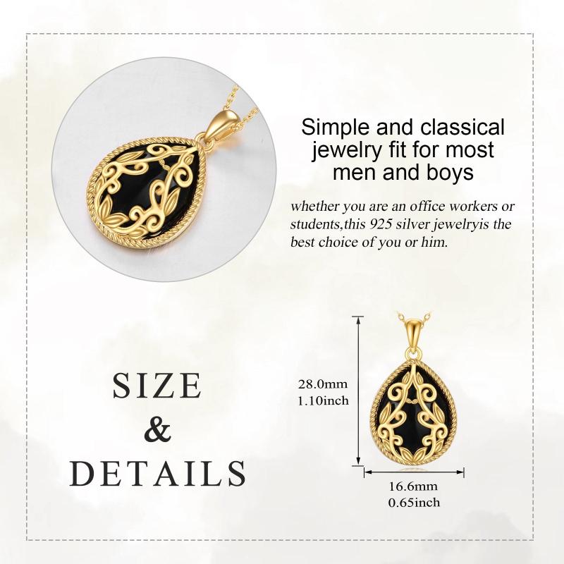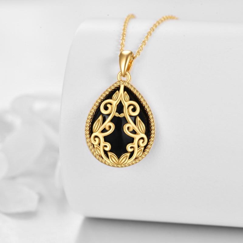 This stunning teardrop necklace is crafted with onyx sterling silver and features a beautiful 18K golden plated Nordic filigree design. Perfect for women and girls who love a boho chic style.