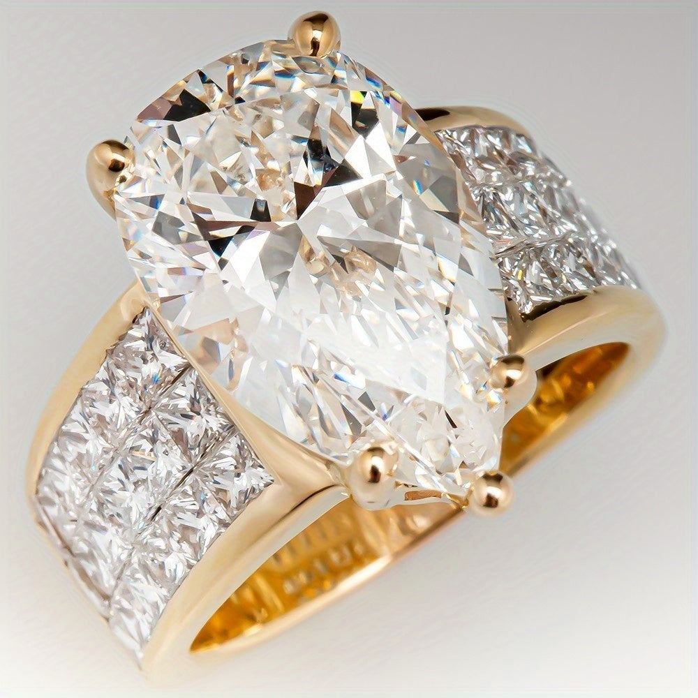 Elevate your style with this elegant 18K plated band ring featuring an inlaid teardrop-shaped zircon. Perfect for noble women attending banquets or cocktail parties.