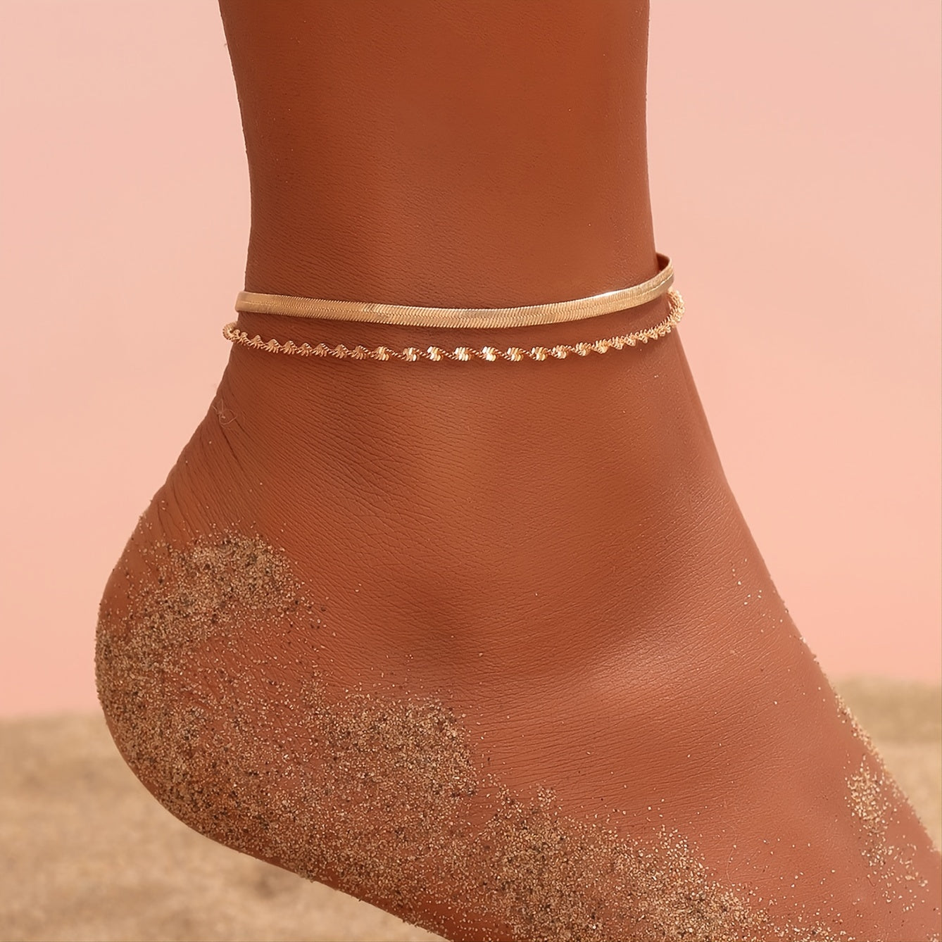 This set includes a dainty and chic layered chain ankle bracelet that adds a touch of elegance to your look. The adjustable design ensures a comfortable fit for any ankle size.