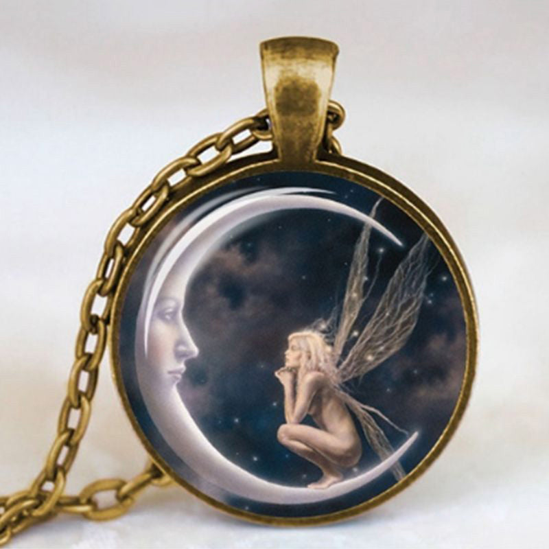 This unique and creative angel necklace set features a time gem design, perfect for adding a touch of personality to your jewelry collection. Made from high-quality glass, this set is ideal for little girls and those who love unique accessories.