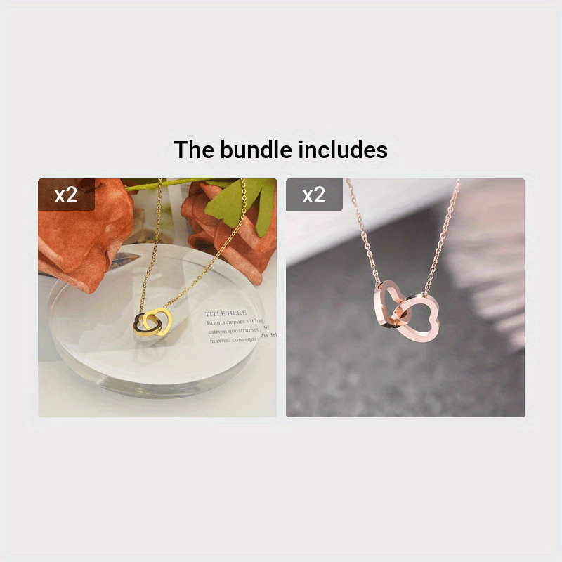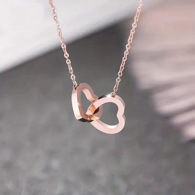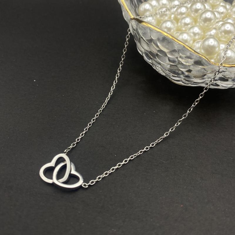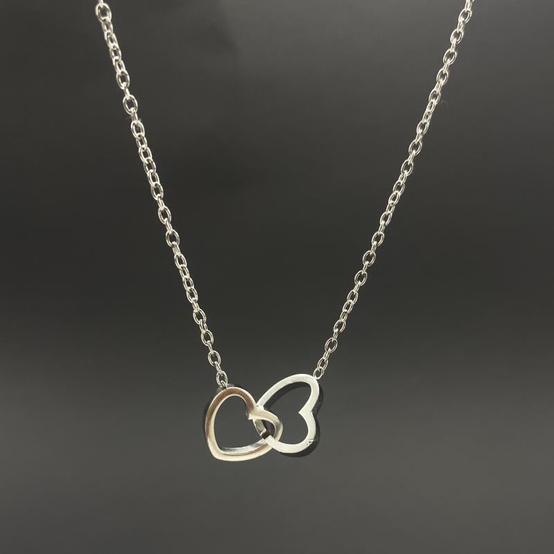This interlocking double ring clavicle chain necklace is a durable and minimalist everyday jewelry piece, perfect for couples or as a Valentine's gift.