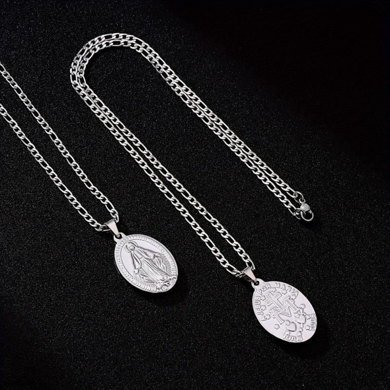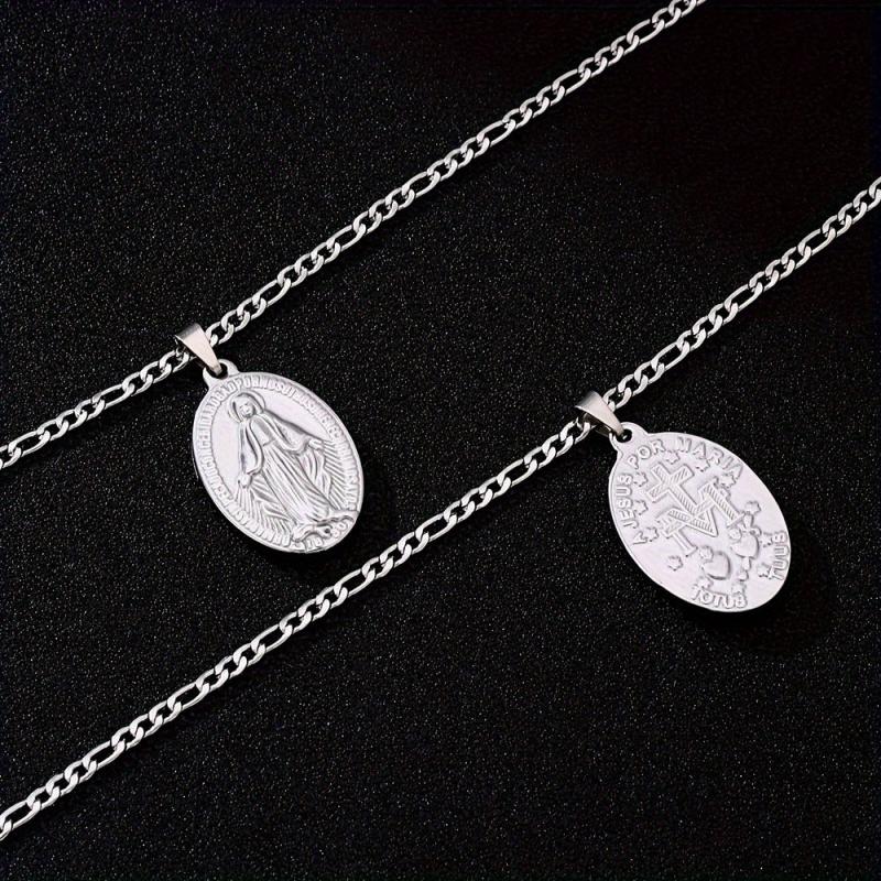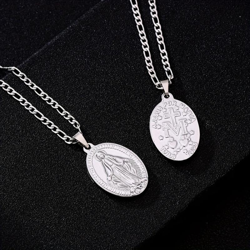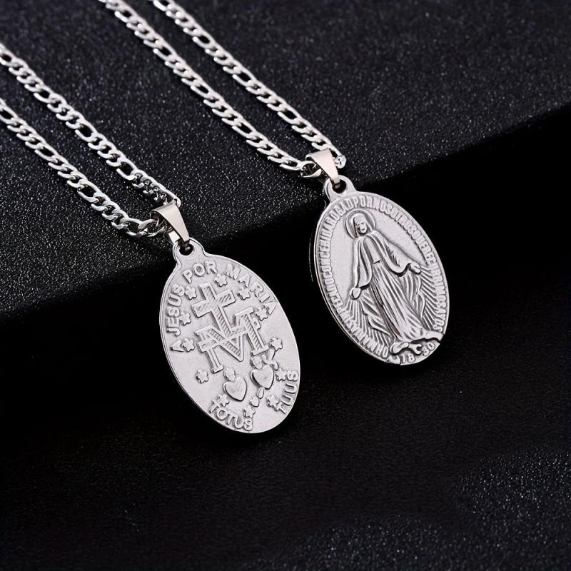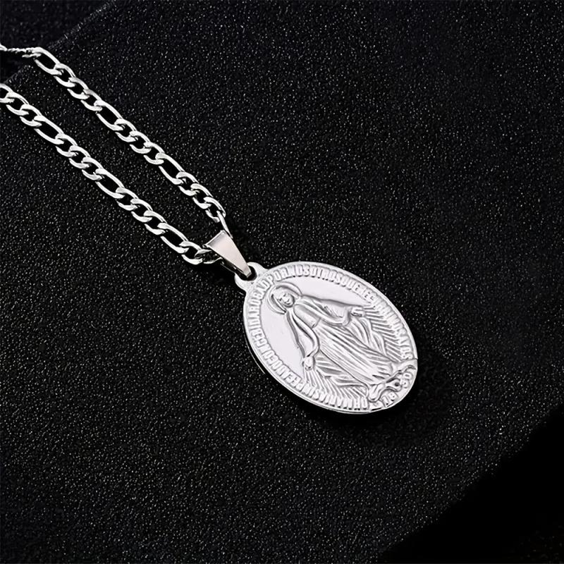 This stylish pendant necklace is made of fade-resistant titanium steel and features the Virgin Mary design. It is a perfect accessory for men.