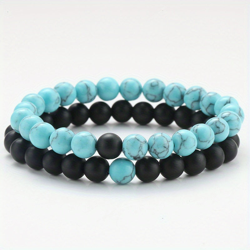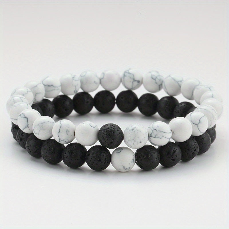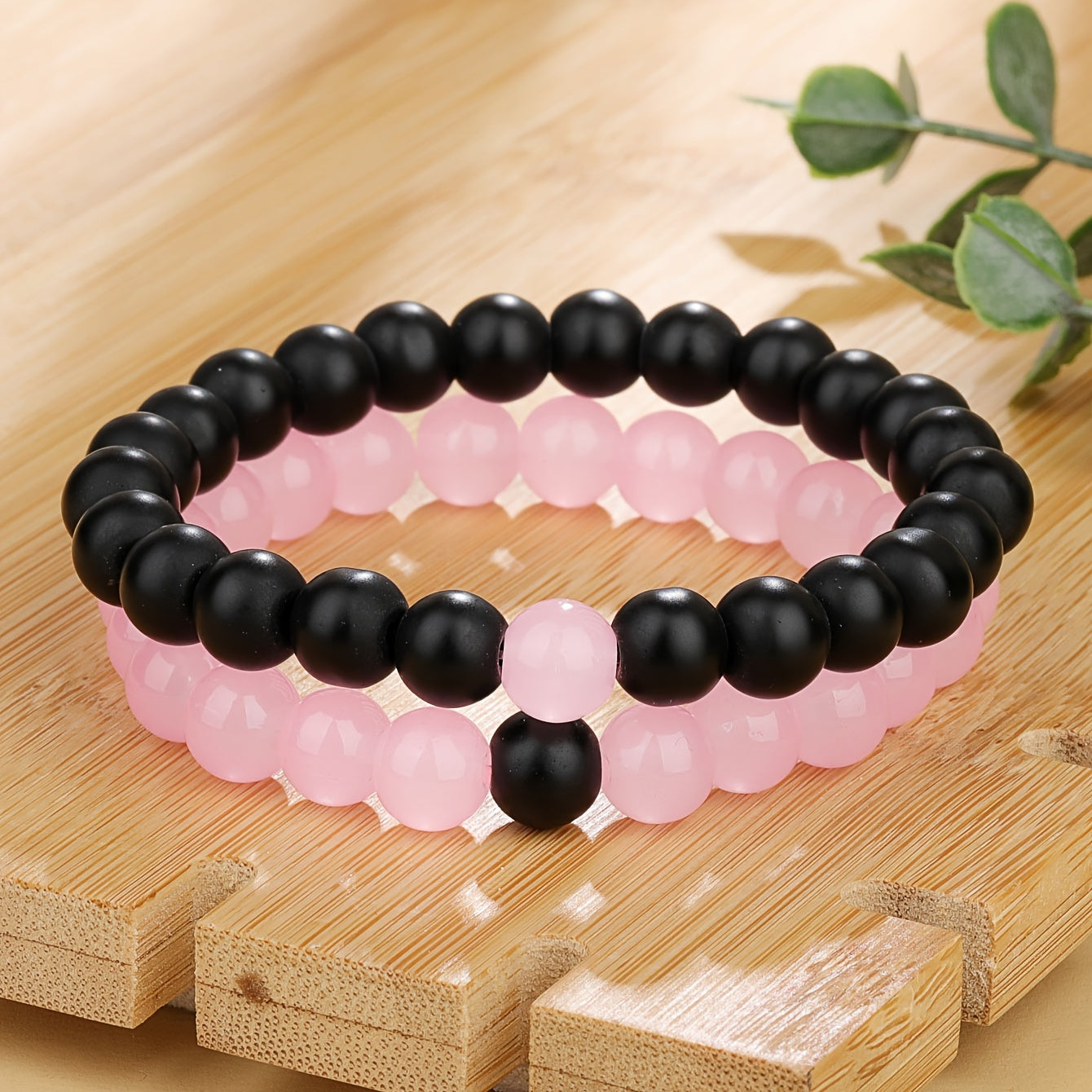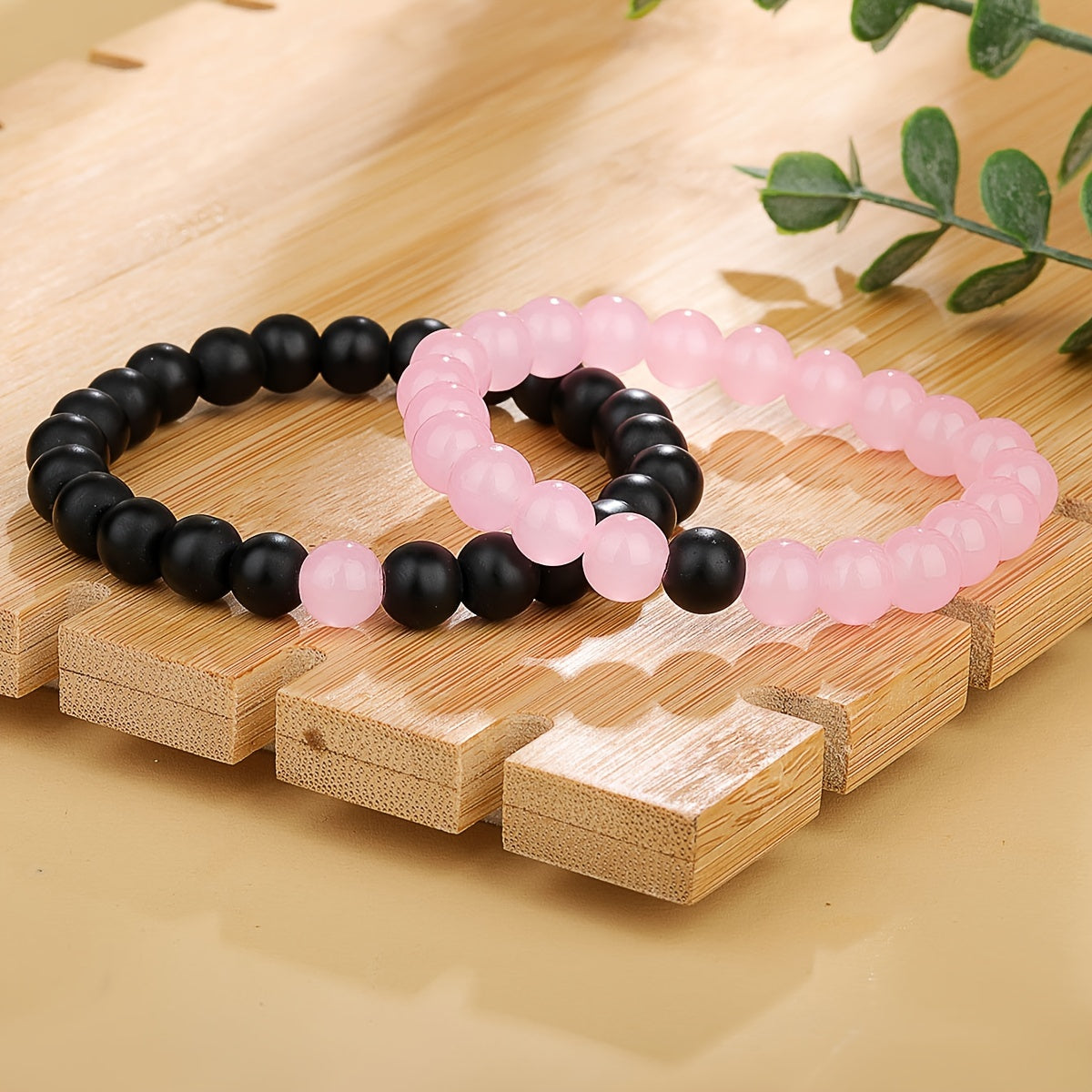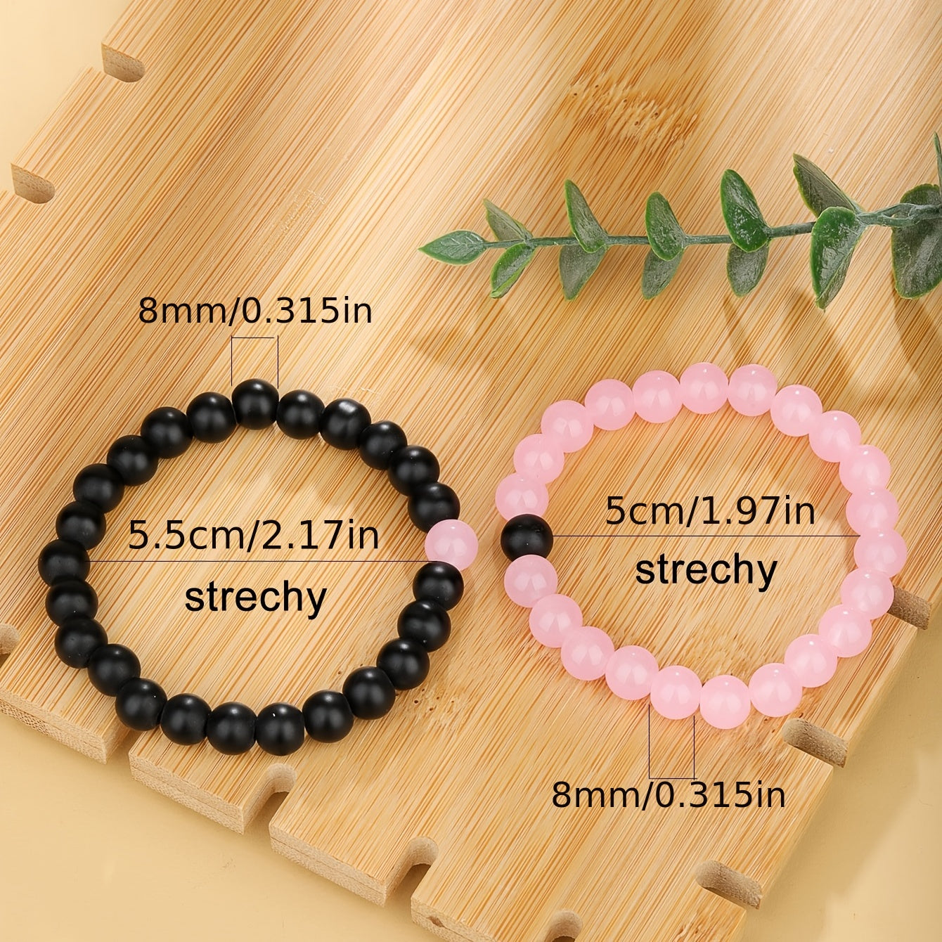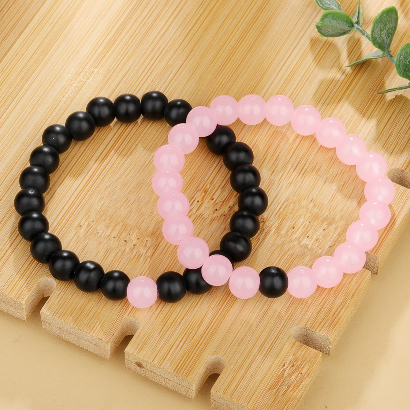 This stylish bracelet set features smooth transparent beads and is a perfect gift for couples. It's a lovely accessory that suits street photography and makes a great birthday present.