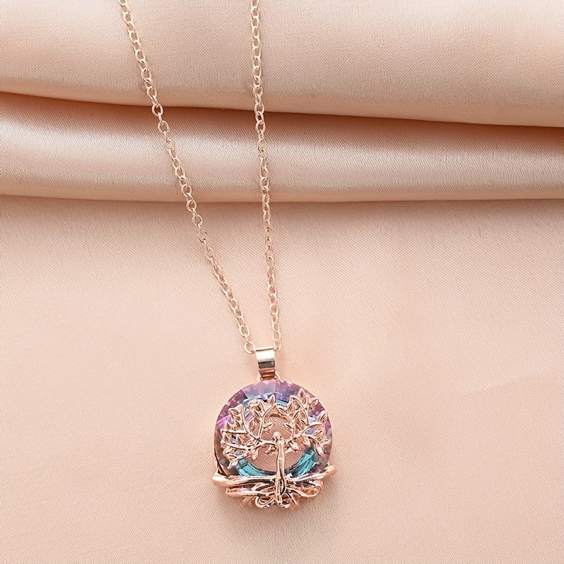 Elegant round crystal necklace featuring a Tree of Life design, perfect for weddings and special occasions.