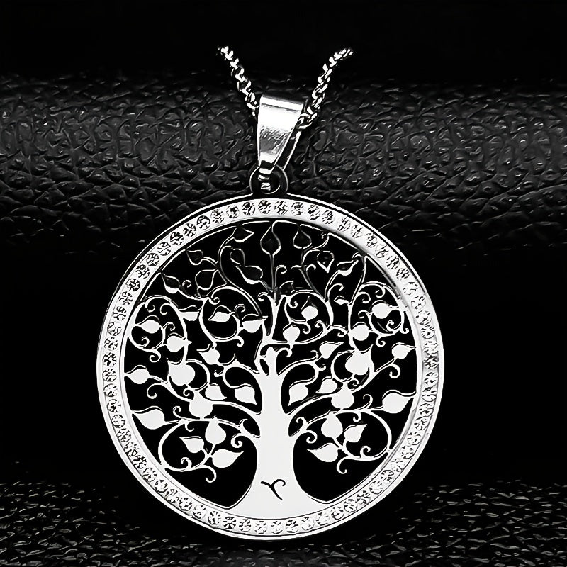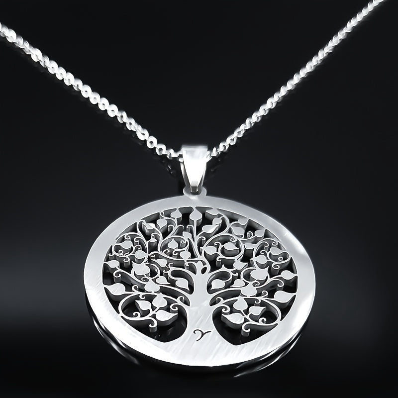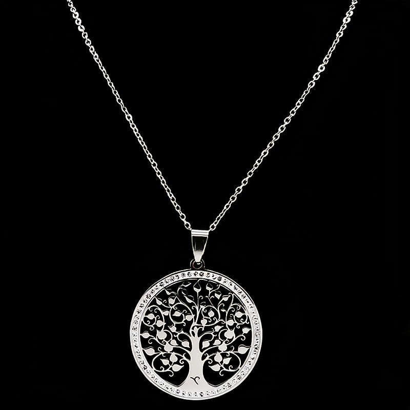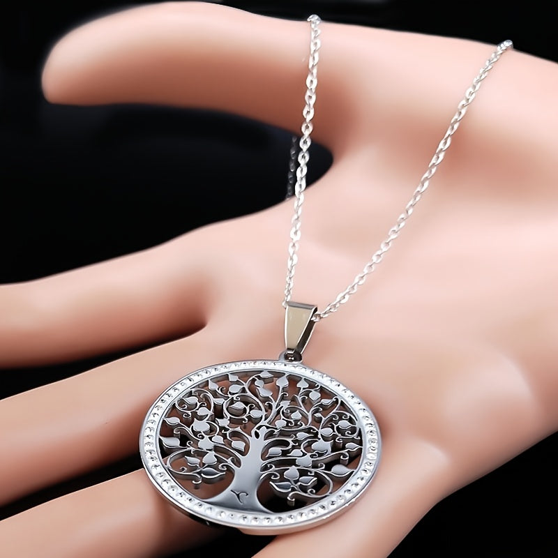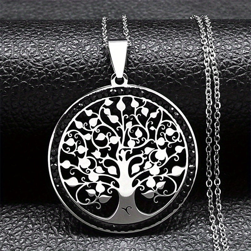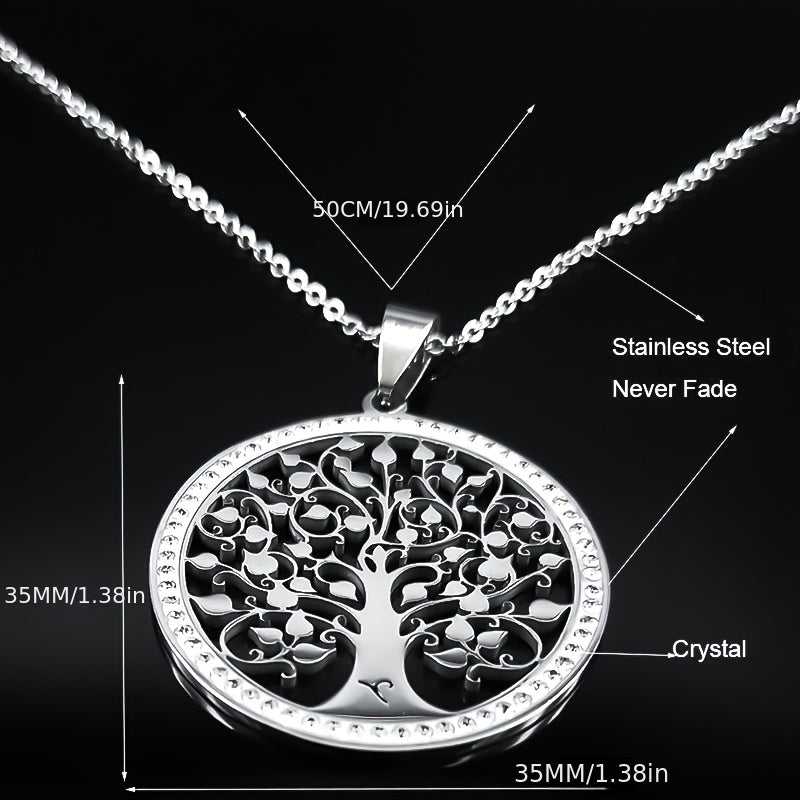 This stunning Tree of Life crystal necklace is the perfect accessory for women. Made of stainless steel, it's a beautiful piece of statement jewelry that is great for gifting during Christmas.