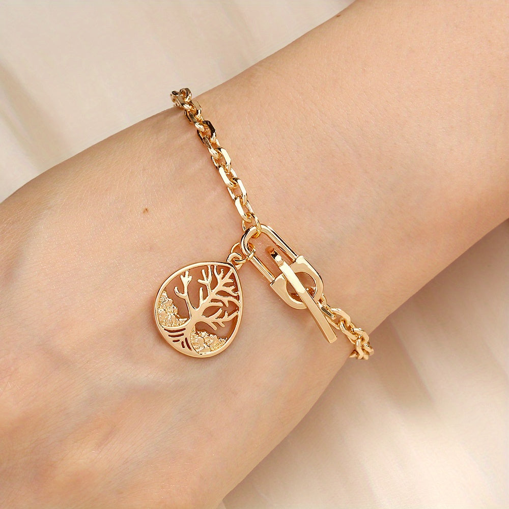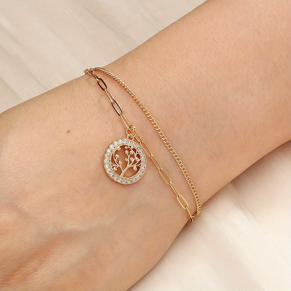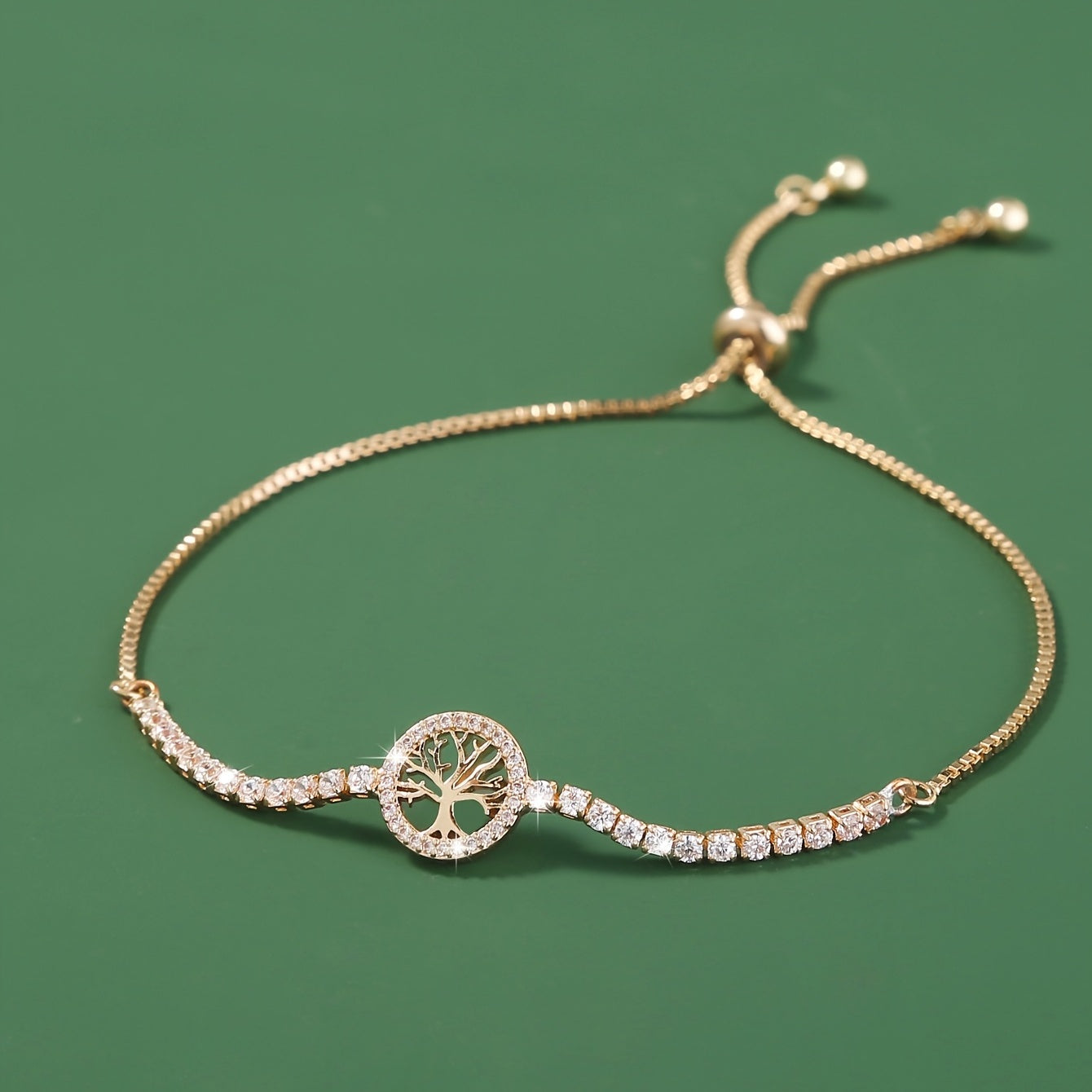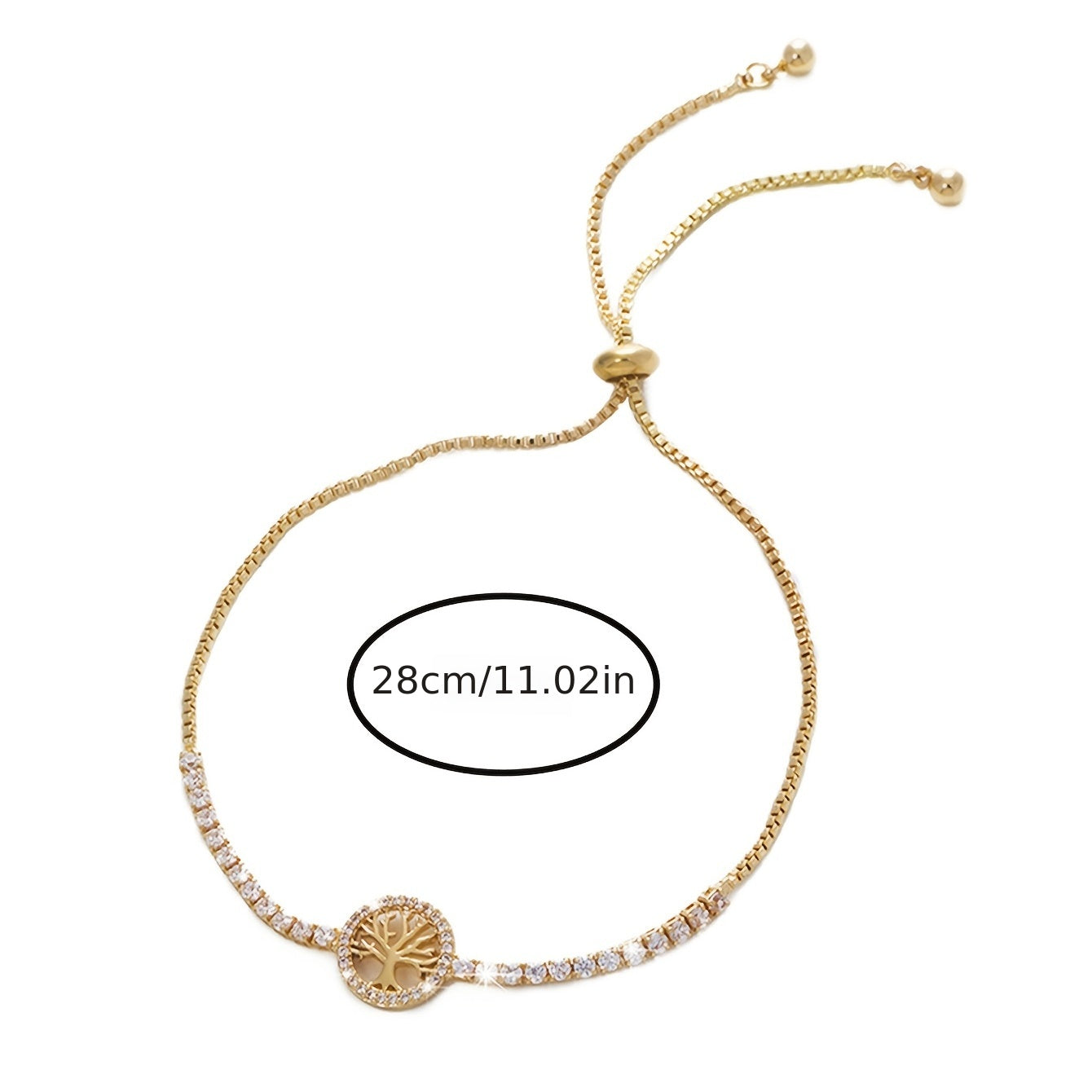 This stunning chain bracelet features a Tree of Life shape inlaid with sparkly zircon stones. The adjustable design makes it easy to wear and perfect for any occasion.