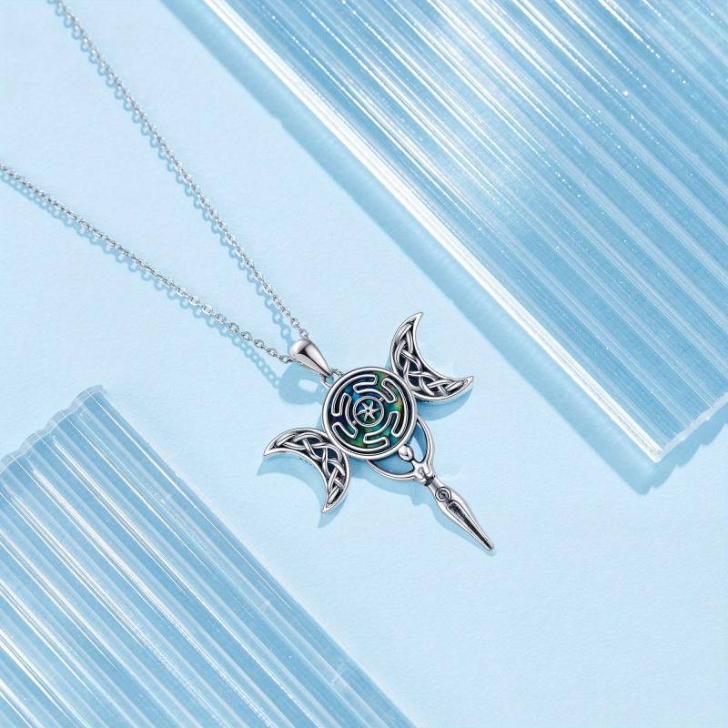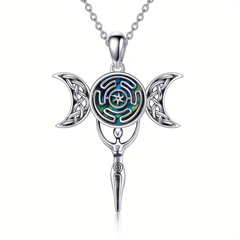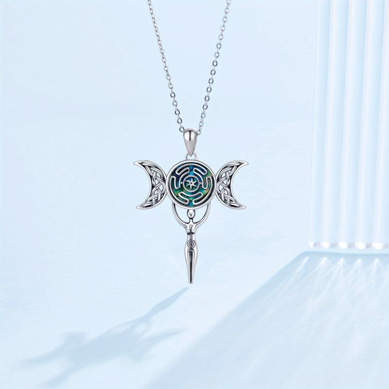 This beautiful necklace features a Triple Moon Goddess design with a Hecate pendant, crafted from 925 sterling silver. Perfect gift for Pagan women on Valentine's Day.