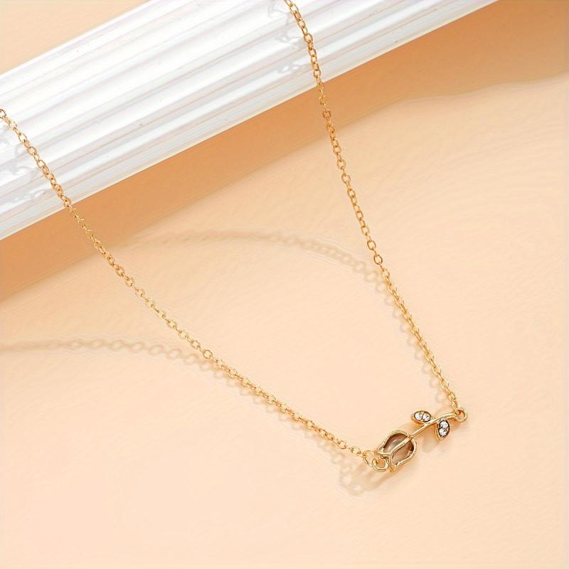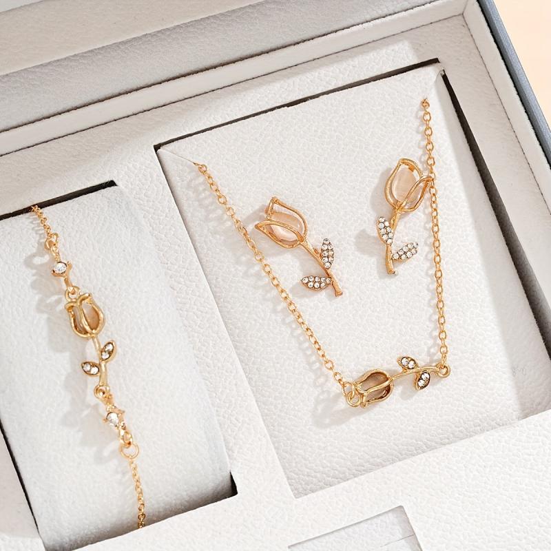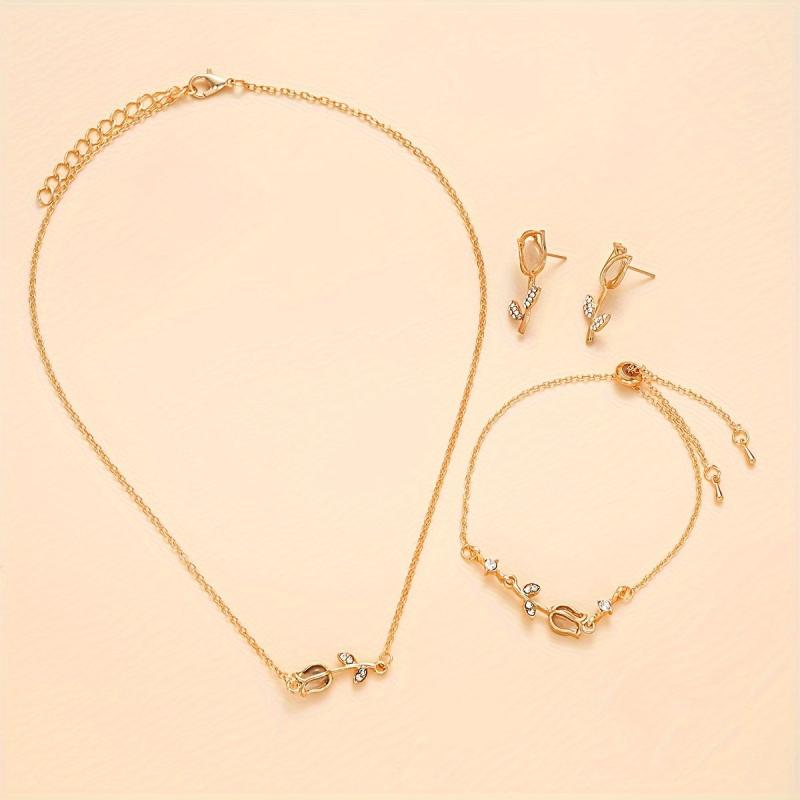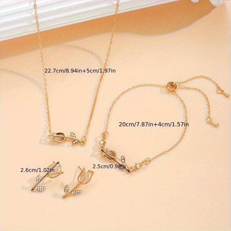 Enhance your style with this 4pcs Tulip Jewelry Set featuring rhinestone accents. Perfect for daily wear or as a gift for women.