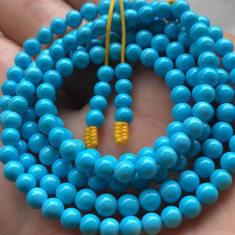 Handmade with 108 6mm turquoise stone beads, this unisex necklace features a yellow cord and tassel. Perfect for everyday wear or as a meaningful gift for a loved one born in June.