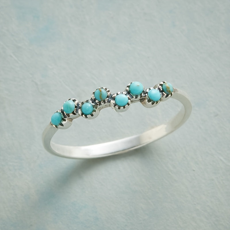 This stunning ring features a reconstituted turquoise stone in a unique bubble cave design. It makes the perfect jewelry piece for a mermaid-loving bride.