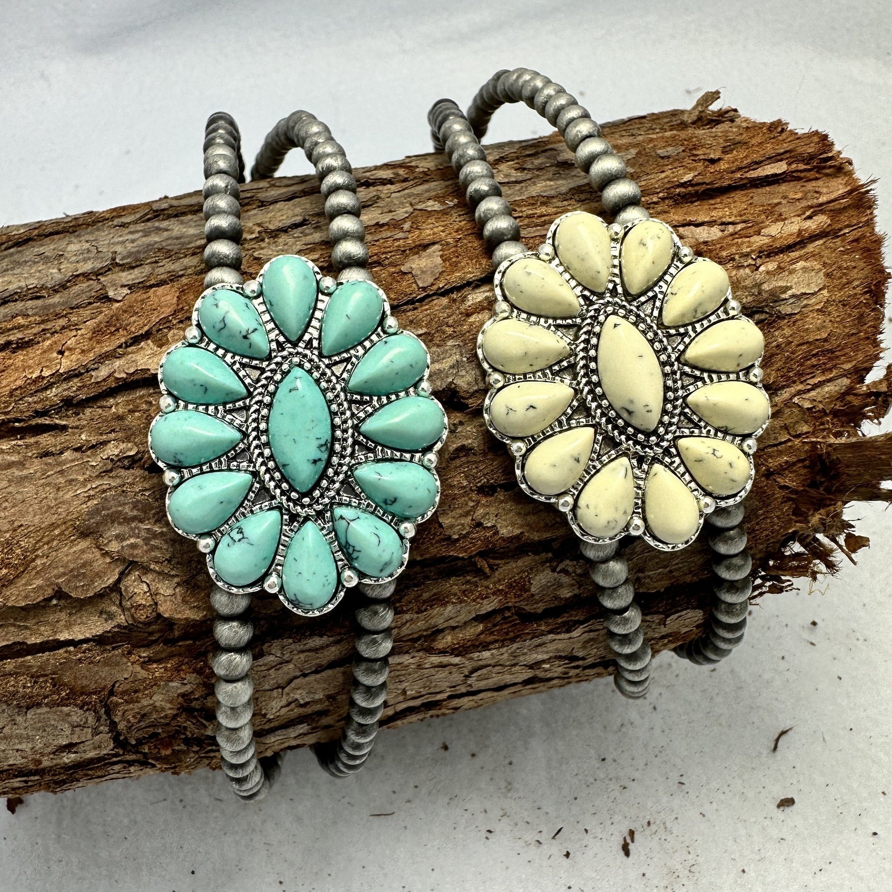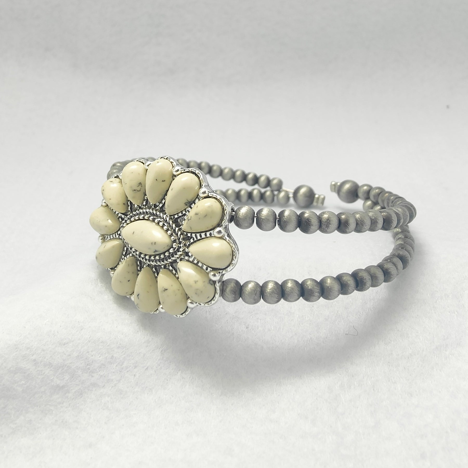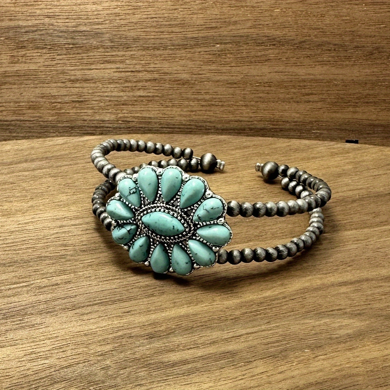 Add a touch of vacation style to your outfit with this stunning Turquoise Navajo Pearl cuff bracelet. Perfect for holiday decor and hand jewelry for females.