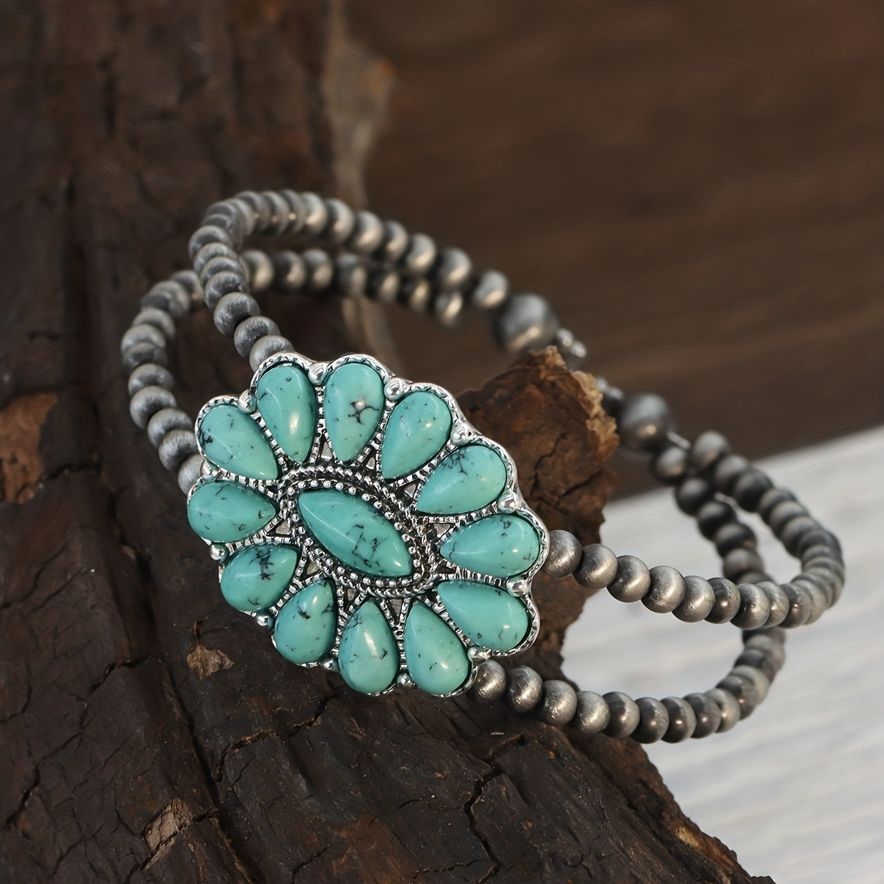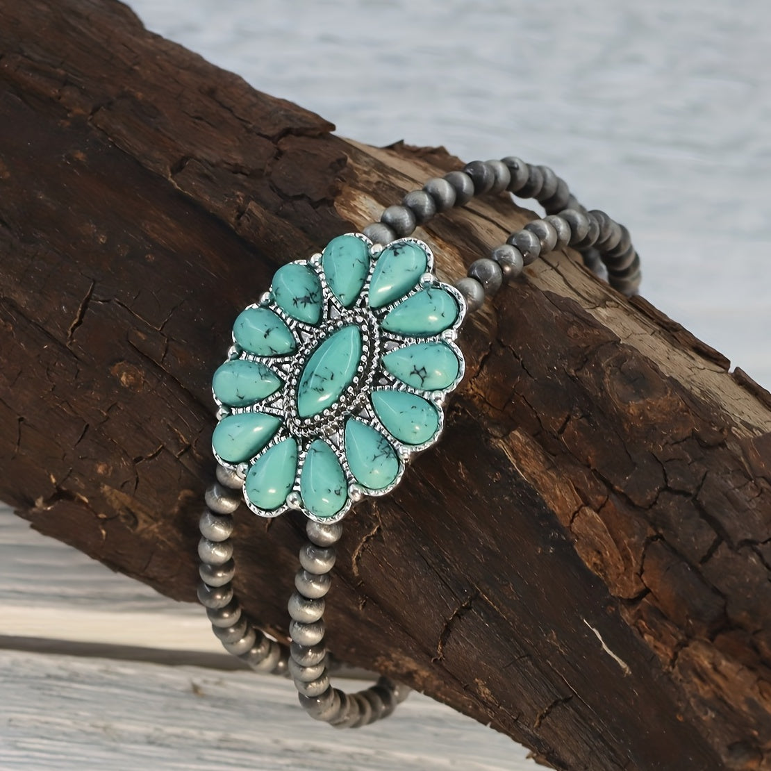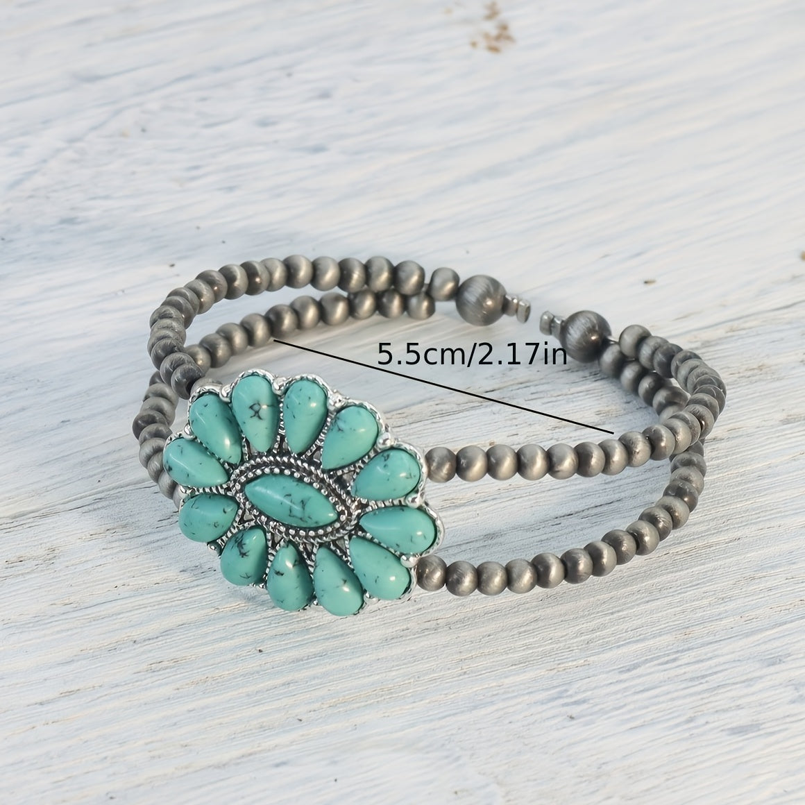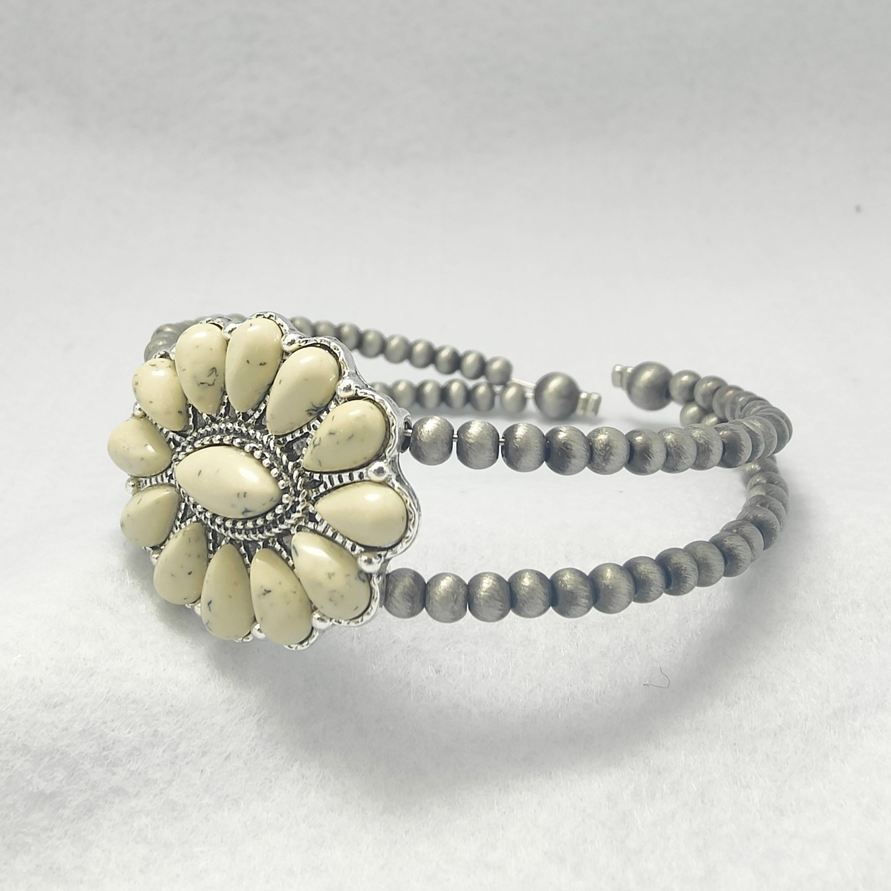 Add a touch of vacation style to your outfit with this stunning Turquoise Navajo Pearl cuff bracelet. Perfect for holiday decor and hand jewelry for females.
