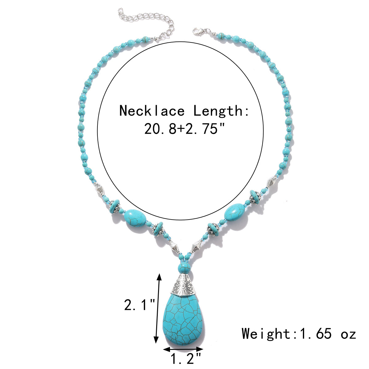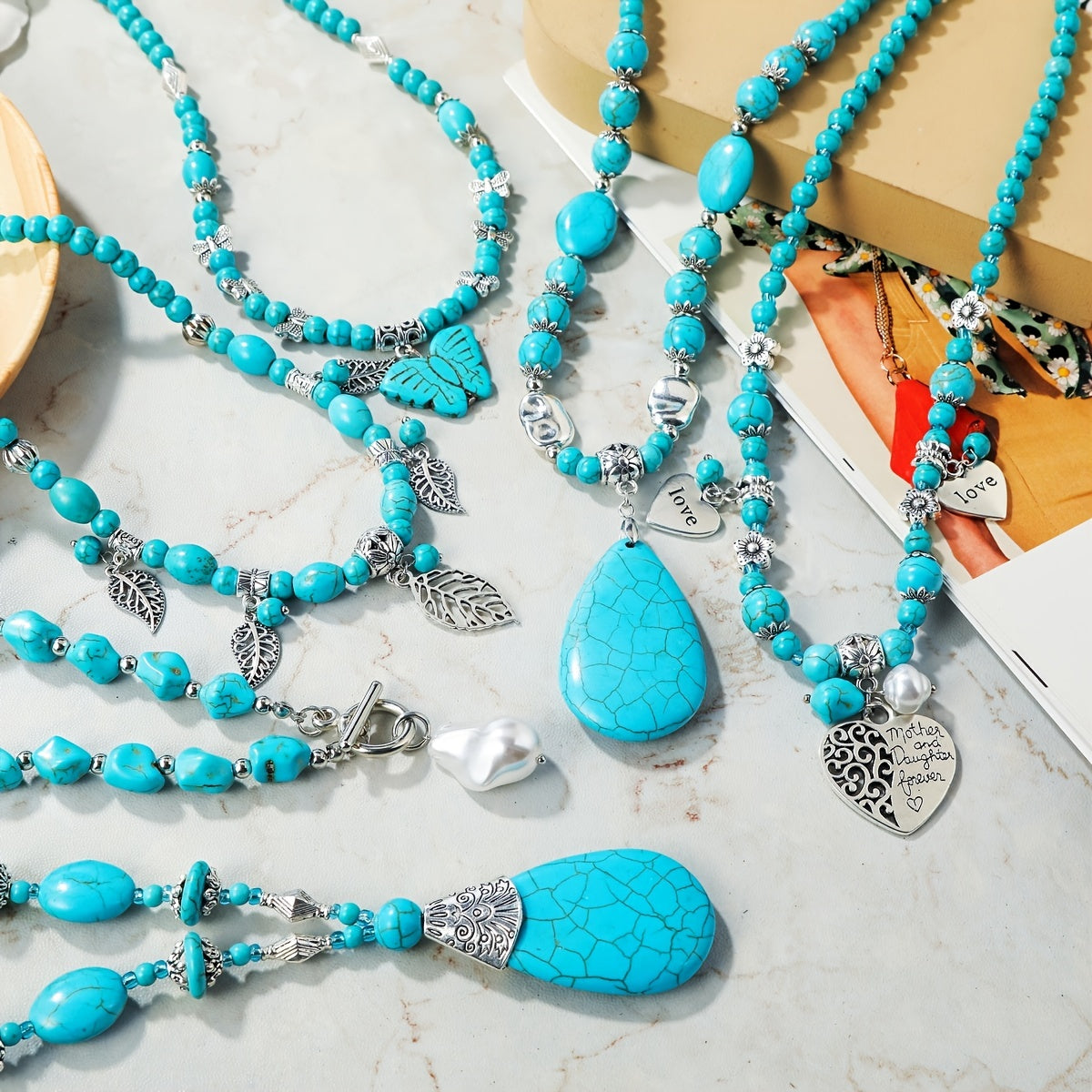 Enhance your look with this vintage alloy necklace featuring turquoise pearls. This beaded necklace boasts a retro style with an ethnic pendant, perfect for adding a touch of charm to your outfit.