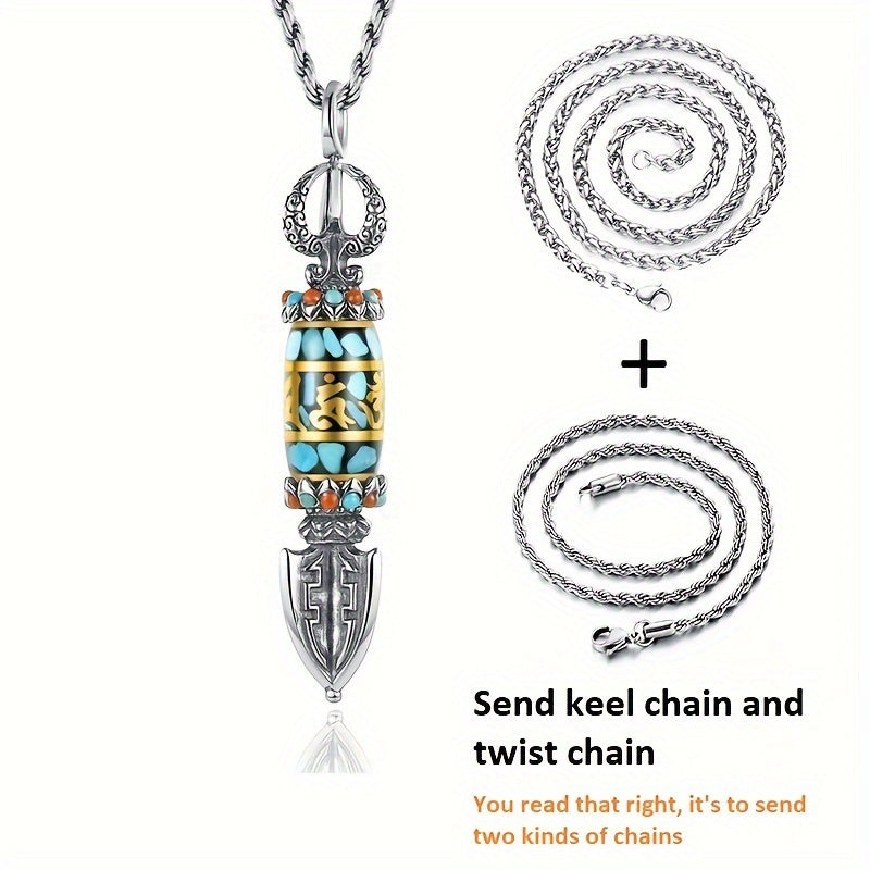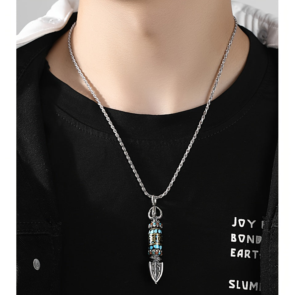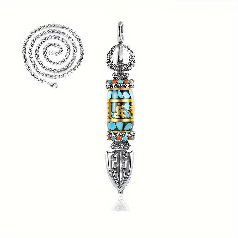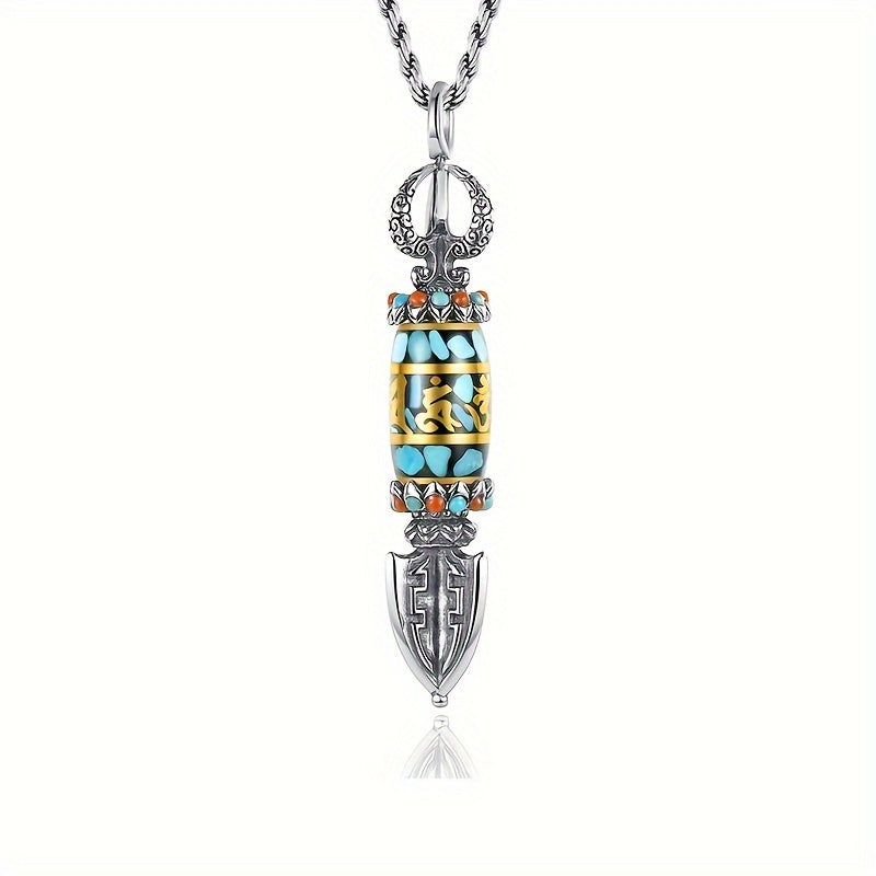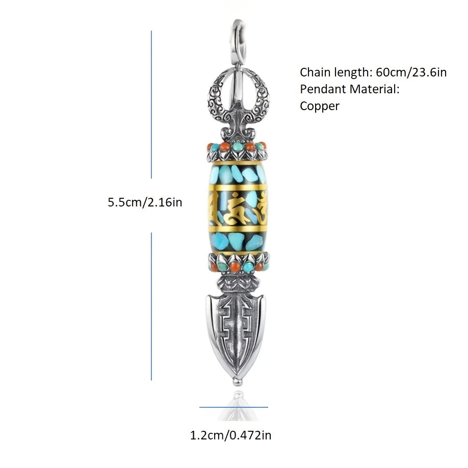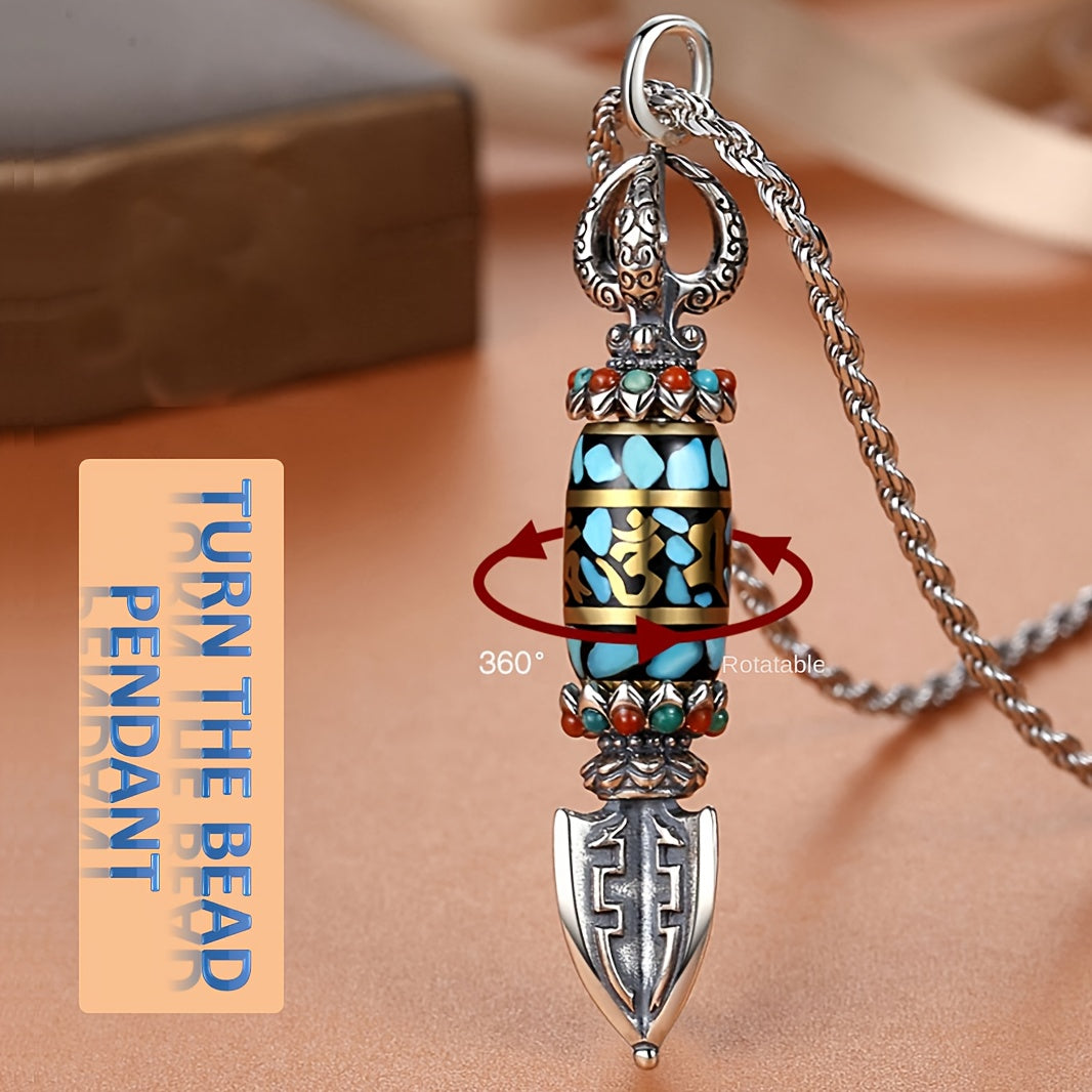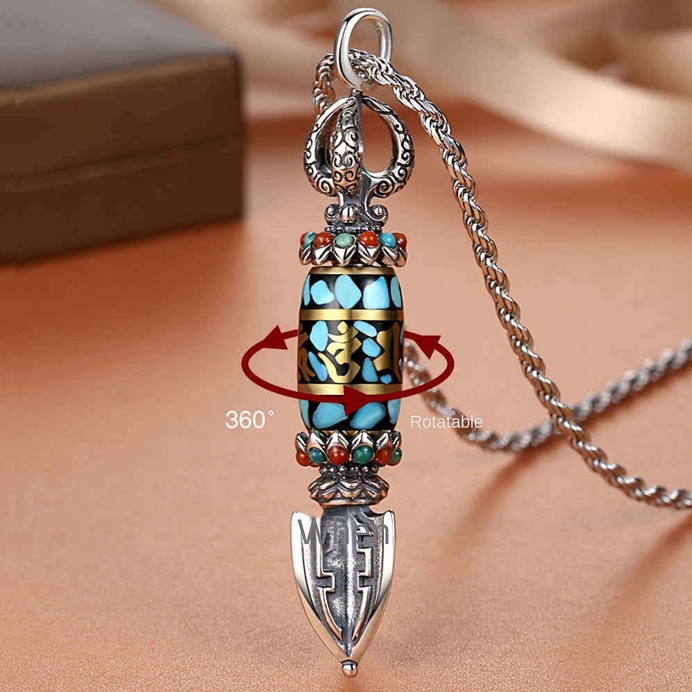 Elegant Turquoise Vajra Pendant Necklace with Rotating Charm. Perfect for everyday wear or parties.