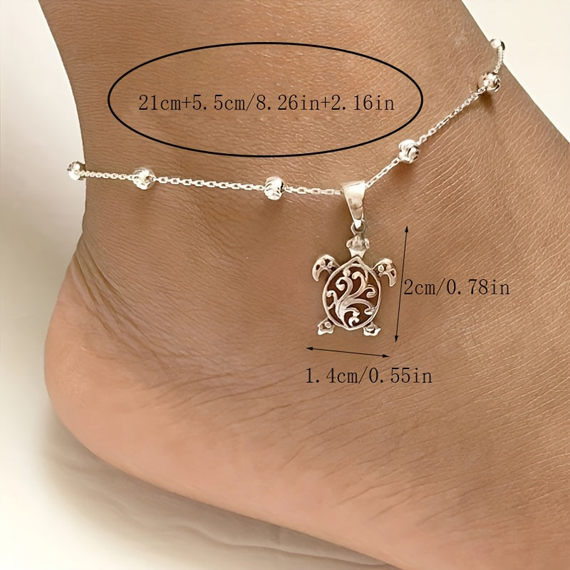 This anklet features oval beads and a turtle-shaped pendant, perfect for summer beach vacations.