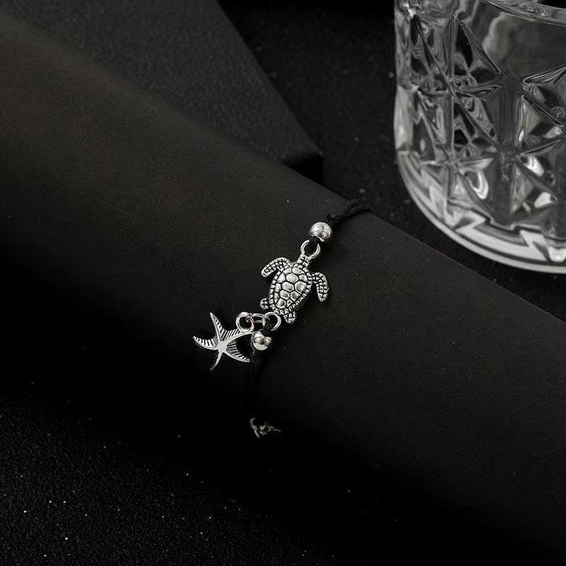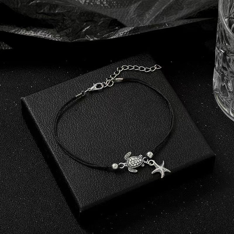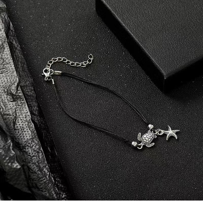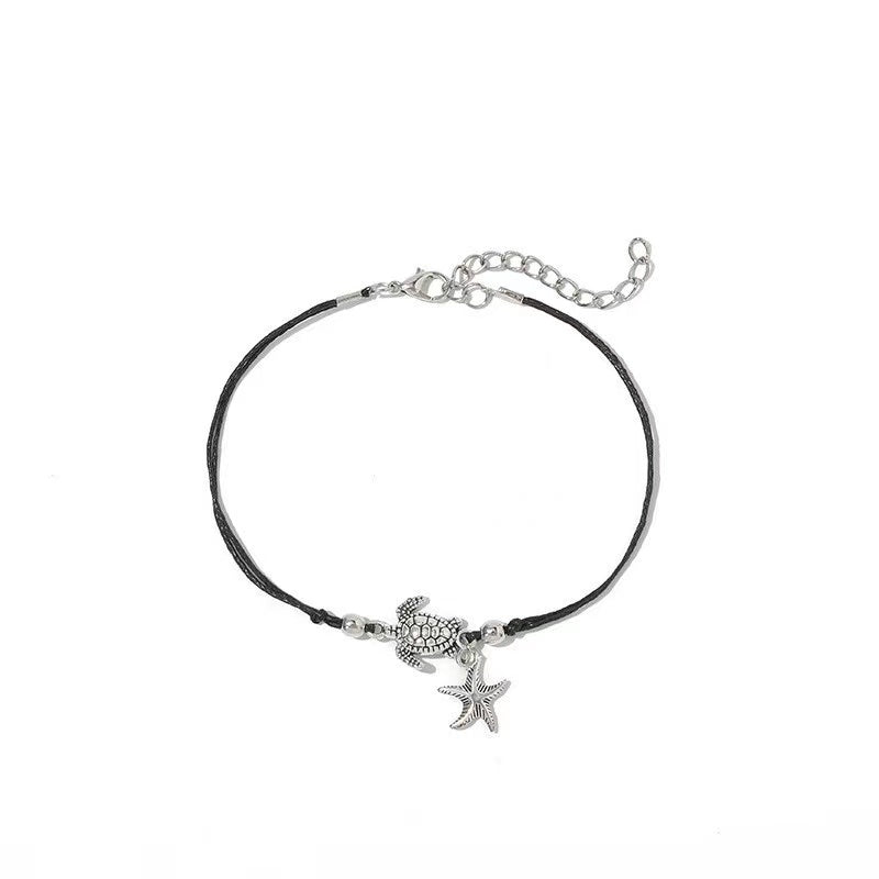Add a touch of beachy charm to your outfit with this anklet featuring turtle and starfish pendants. Perfect for boho style lovers.
