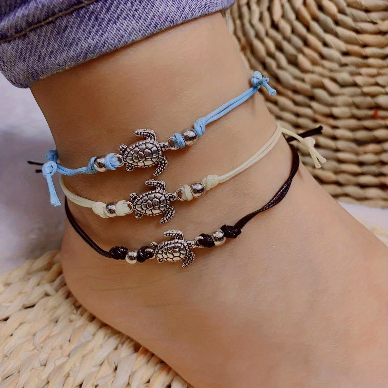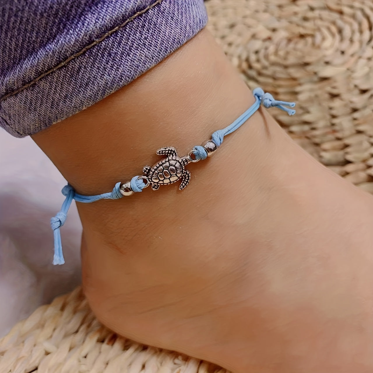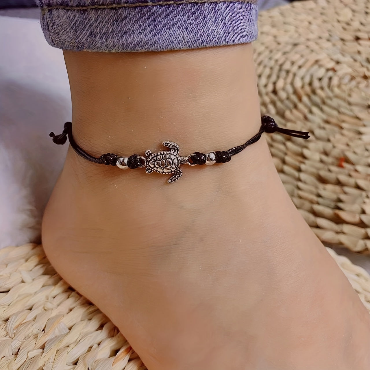 Add a touch of bohemian style to your beach look with this cute turtle string anklet. Made of durable rope, this anklet features a charming turtle design.