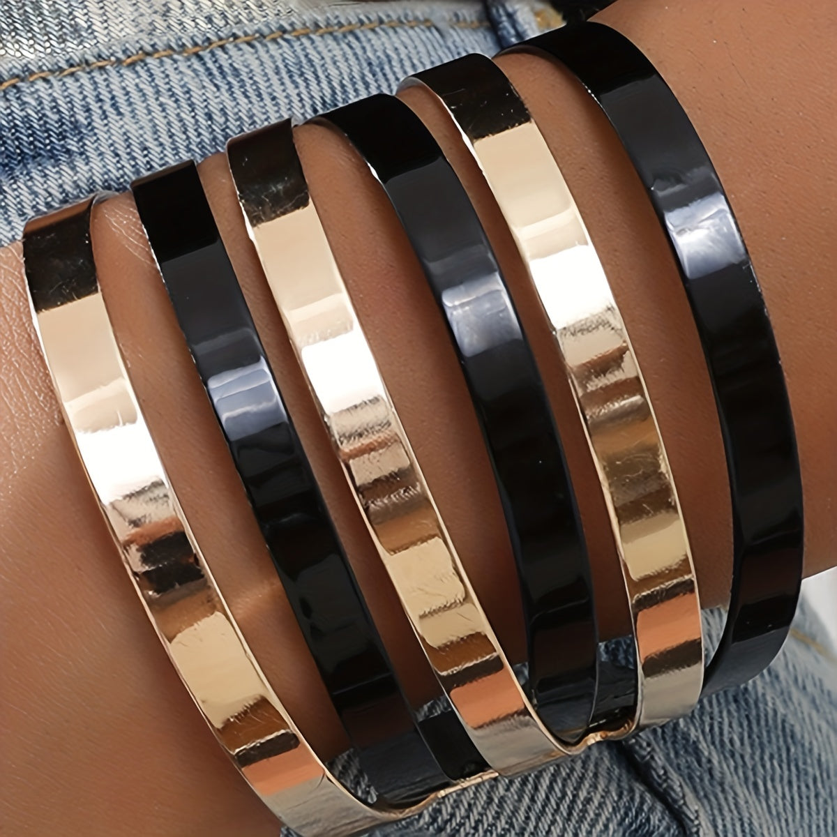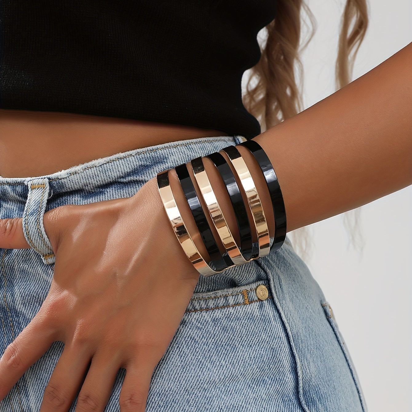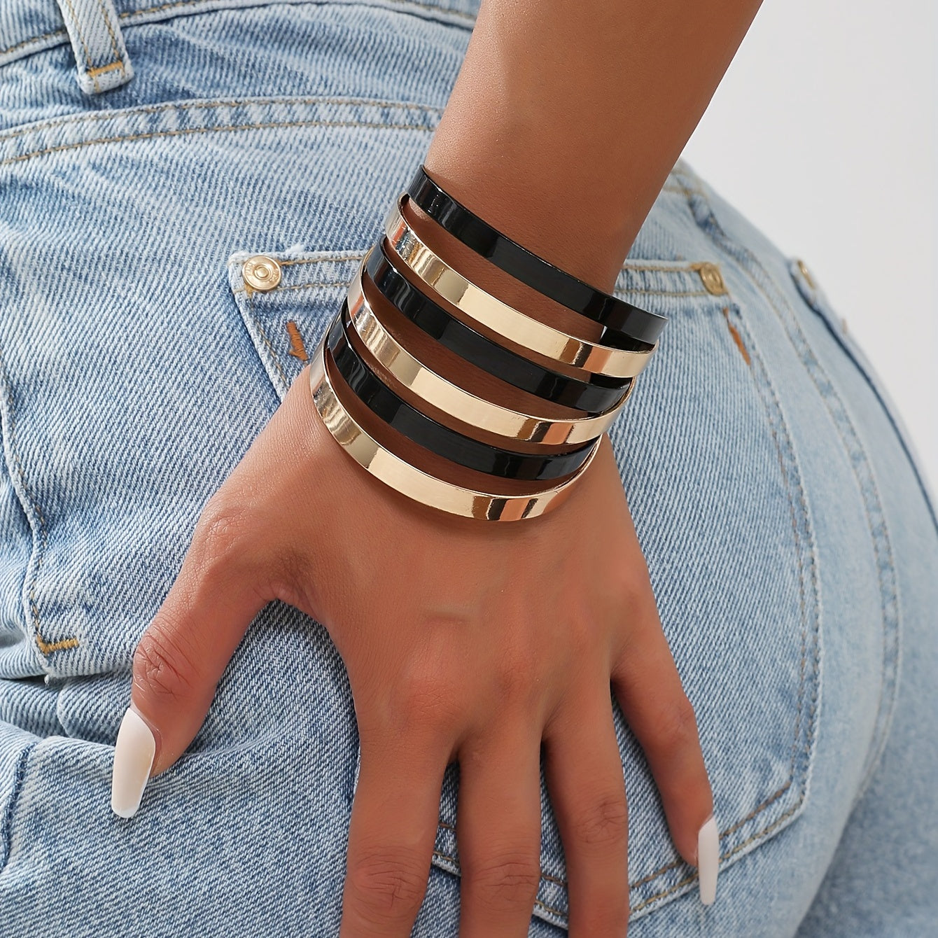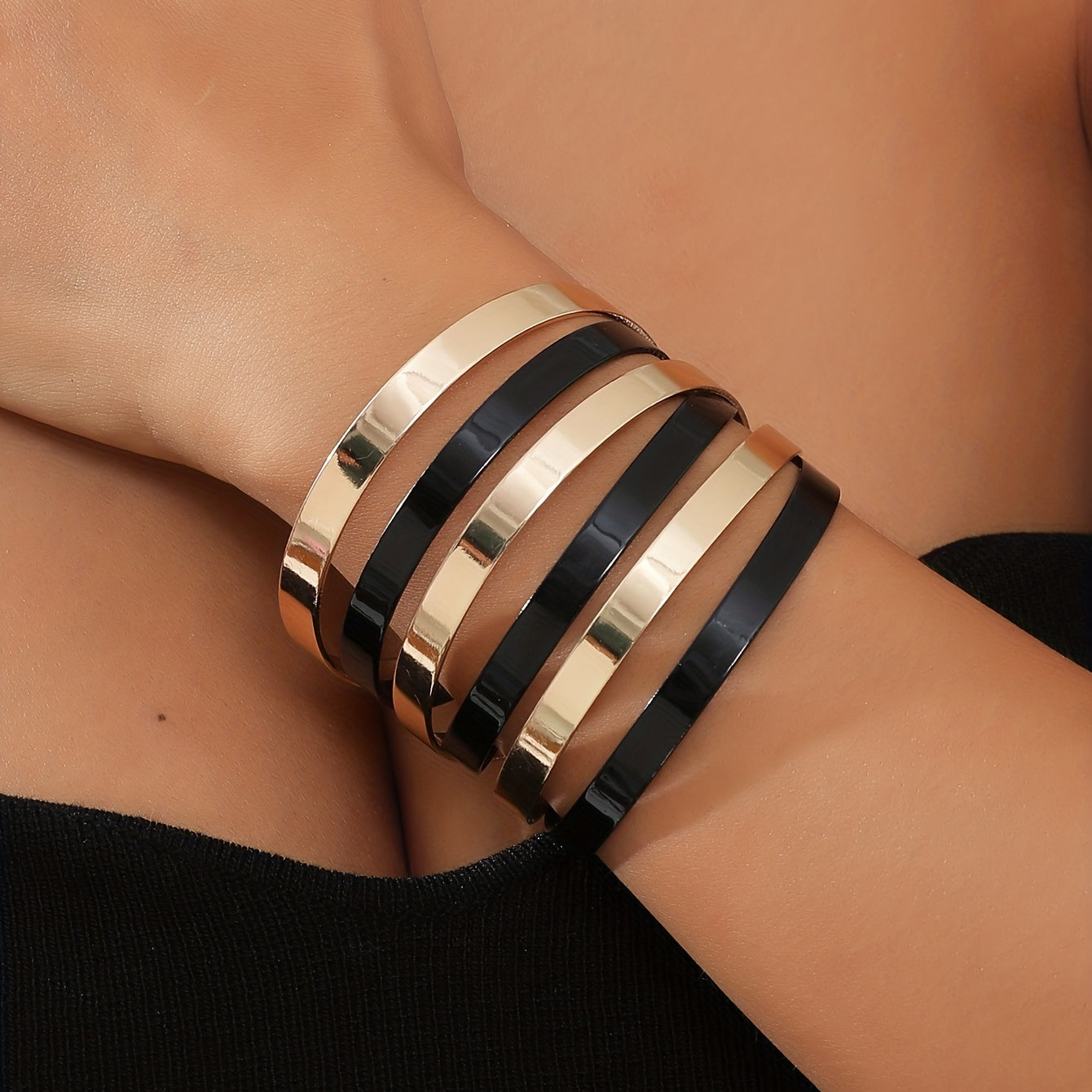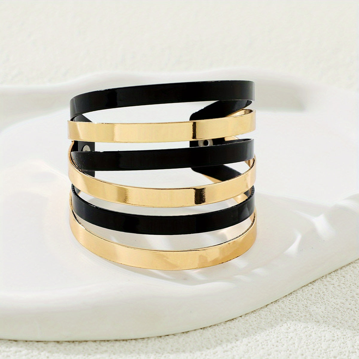 Chic and elegant two-tone golden cuff bangle with hollow line design, perfect for women of all ages.
