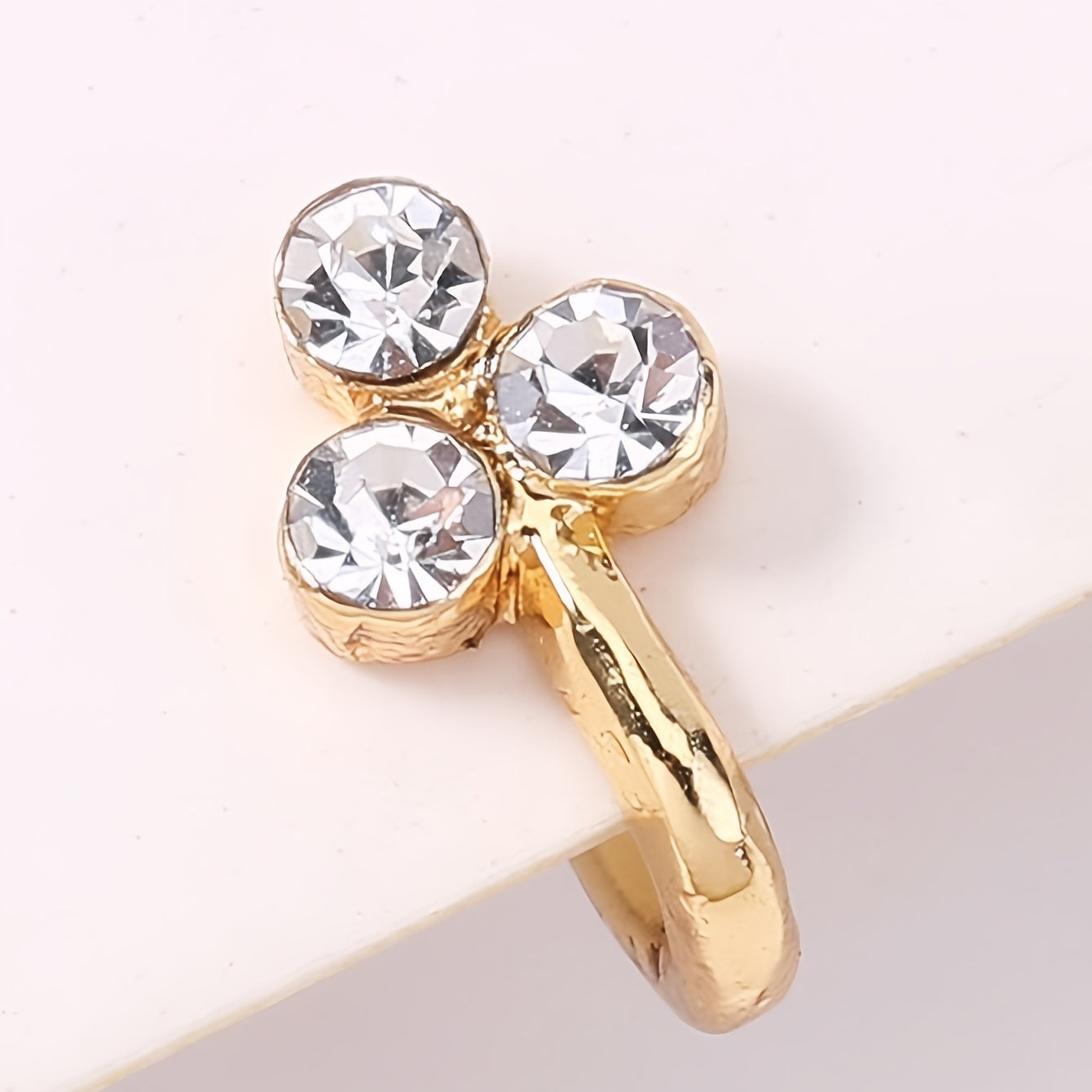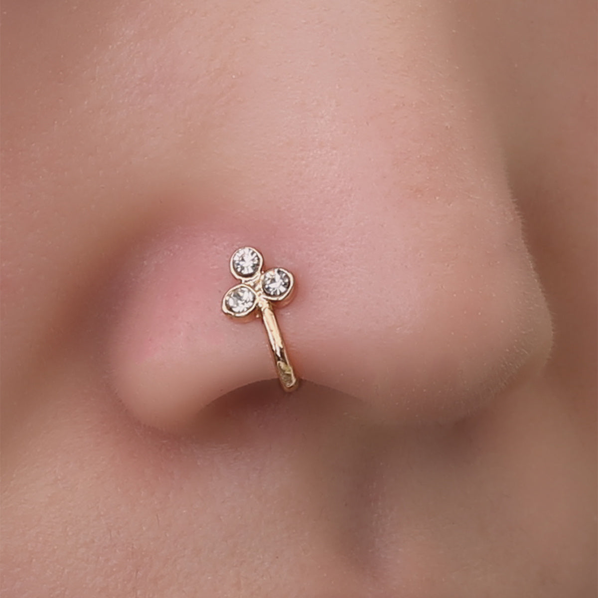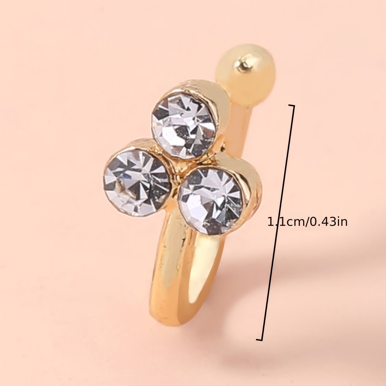 This U shape nose jewelry features three zircon stones and is perfect for women and girls. It is a non-piercing nose clip that can be easily adjusted.