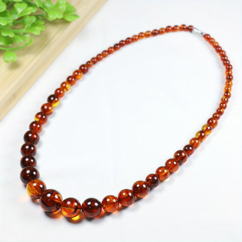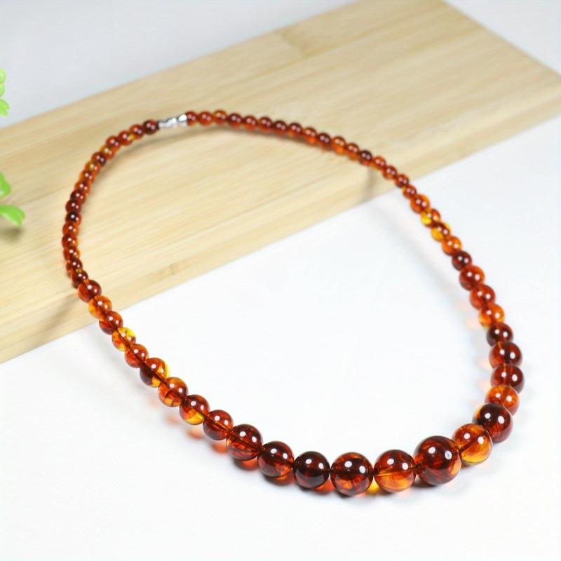 Elegant warm brown and orange translucent beads make this necklace a perfect accessory for any occasion. Its chunky design suits both men and women and is ideal for all seasons.