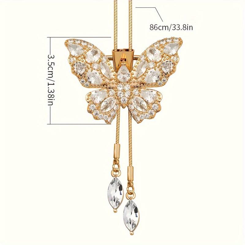 Add a touch of elegance to your outfit with this versatile and fashionable artificial crystal butterfly long necklace. Can also be worn as a high-end butterfly sweater chain.