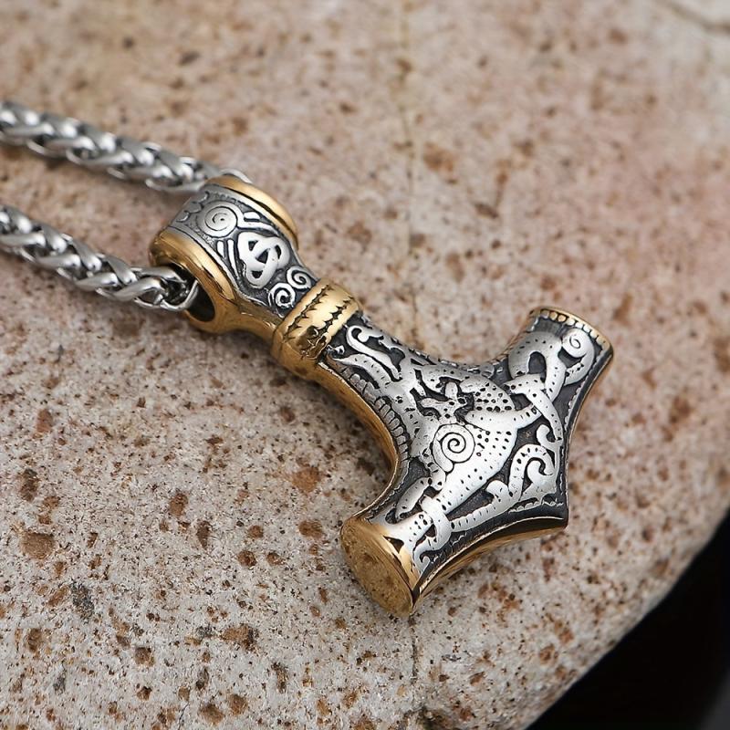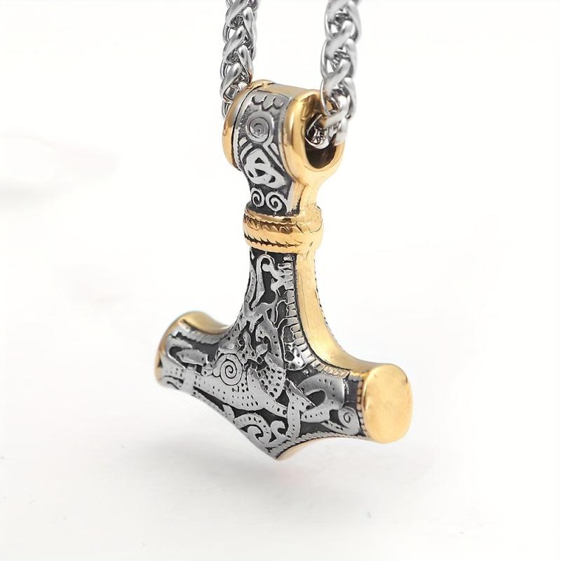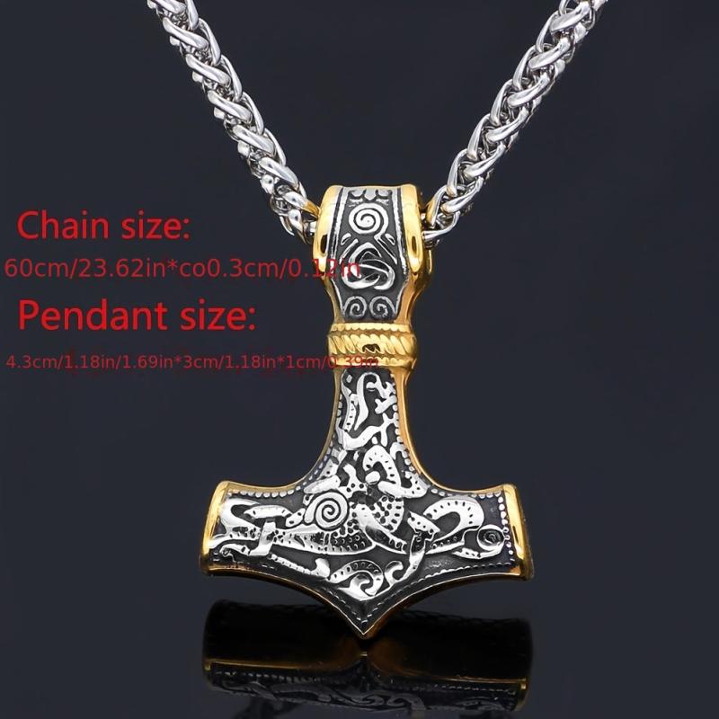 Embrace your inner Viking with this double hammer pendant necklace made of stainless steel. Perfect for men who want to showcase their love for Viking culture and craftsmanship.