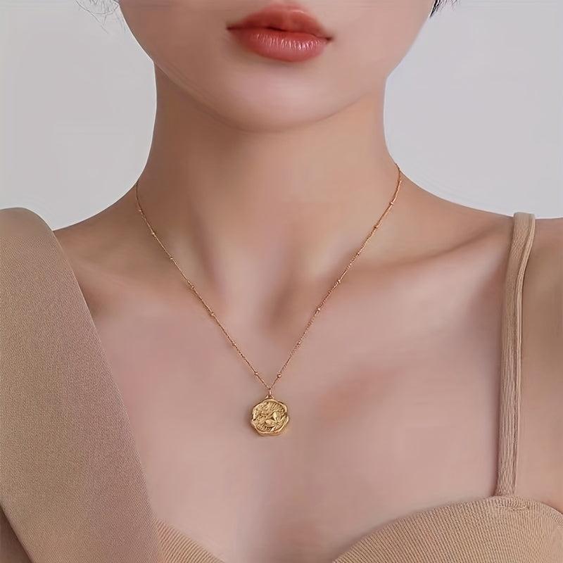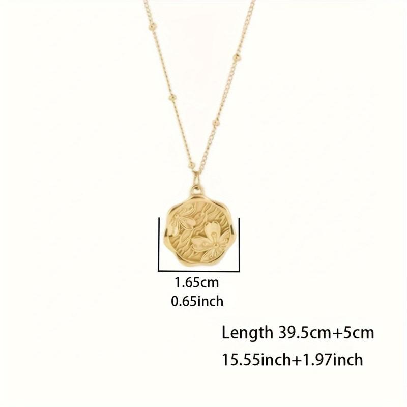 Elegant necklace made of stainless steel with irregular round peach blossom design. Features 18K gold plating for a luxurious look.