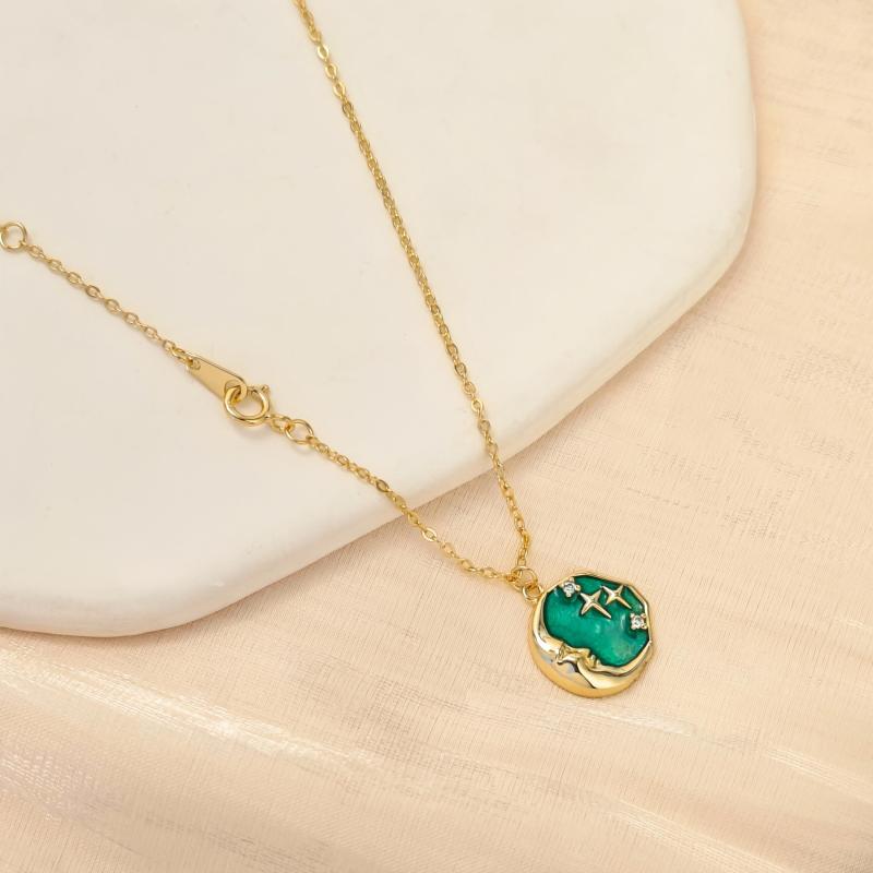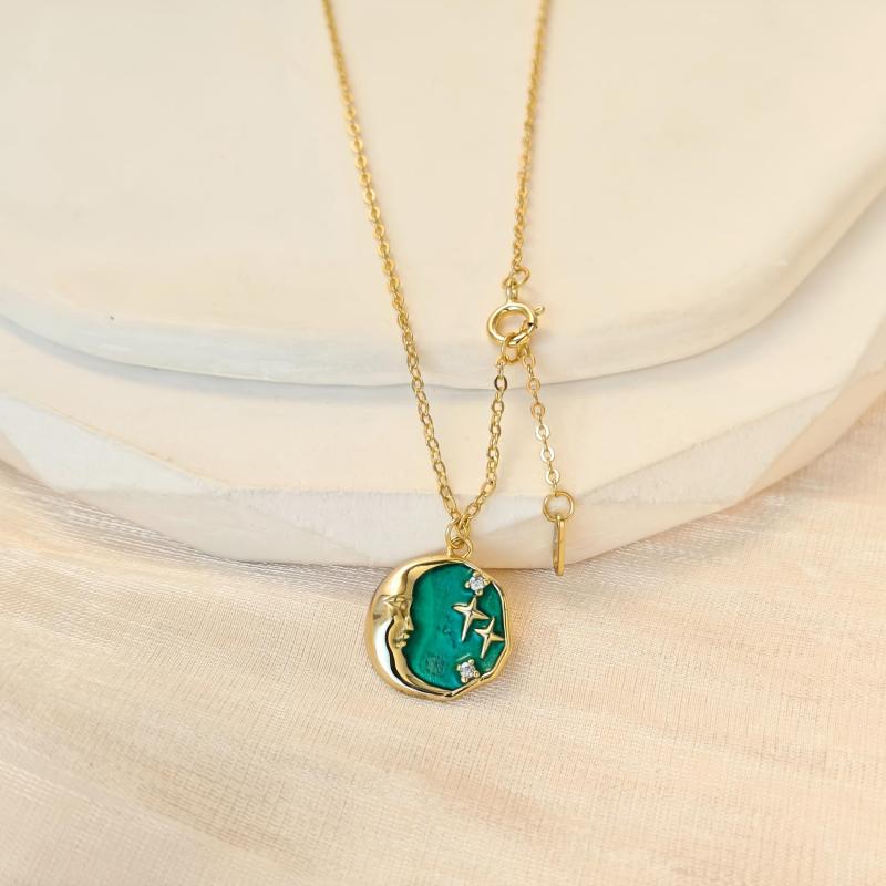 Elevate your style with this stunning necklace featuring a star and moon design adorned with synthetic cubic zirconia. Perfect for casual wear, travel, parties, and gifting on festive occasions.