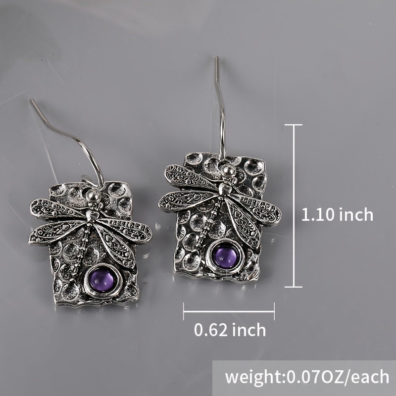 Elegant and bohemian dragonfly earrings featuring amethyst gems. Perfect for women and girls who love unique jewelry pieces.
