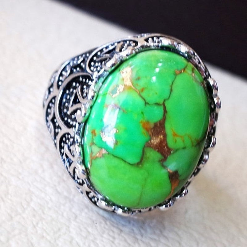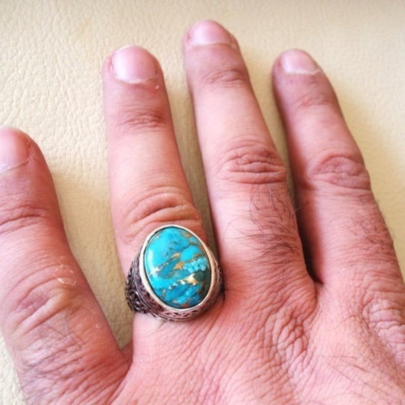 This vintage-style ring features a beautiful artificial turquoise stone set in zinc alloy. It is a perfect accessory for anniversaries, birthdays, or daily wear.