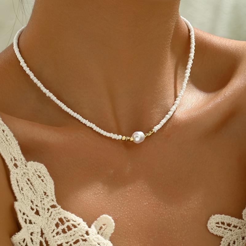 Elevate your style with this exquisite vintage beaded necklace featuring a sparkling pendant and a luxurious golden clasp. Perfect for daily wear and formal events.