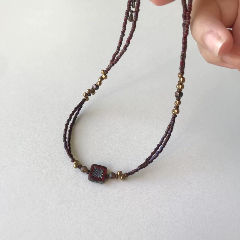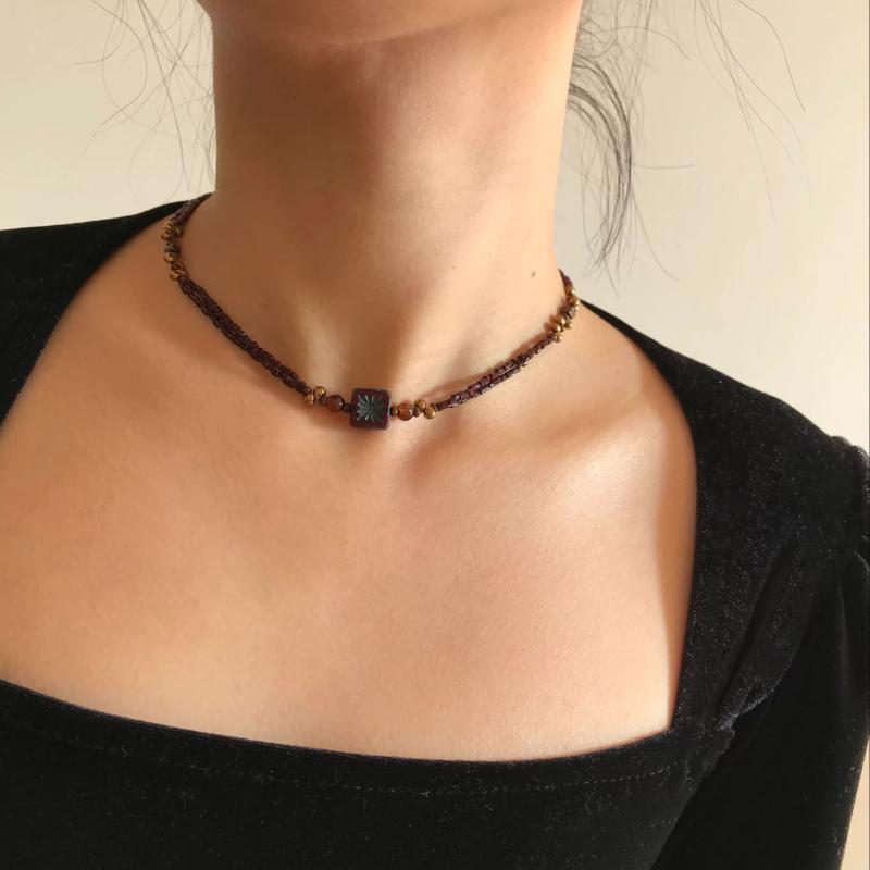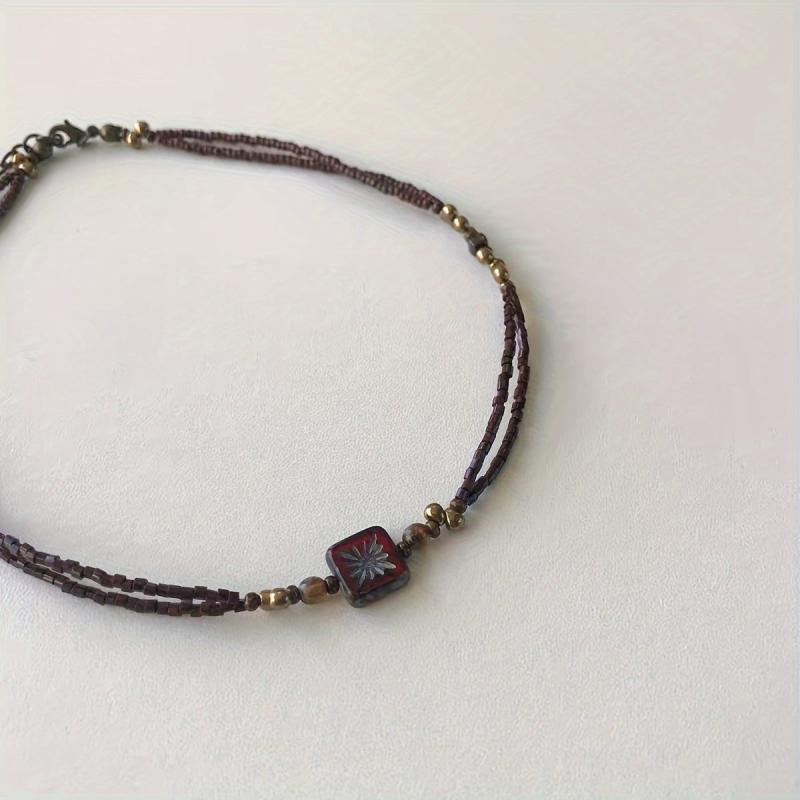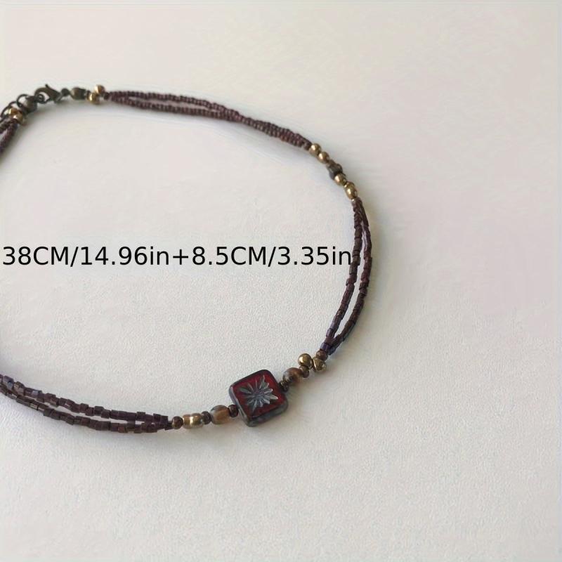 Elevate your style with this versatile bohemian choker featuring burgundy and brown beads in a geometric design. Perfect for daily wear or gifting all year round.