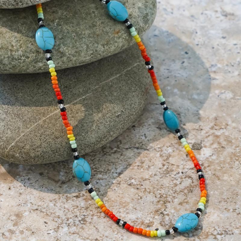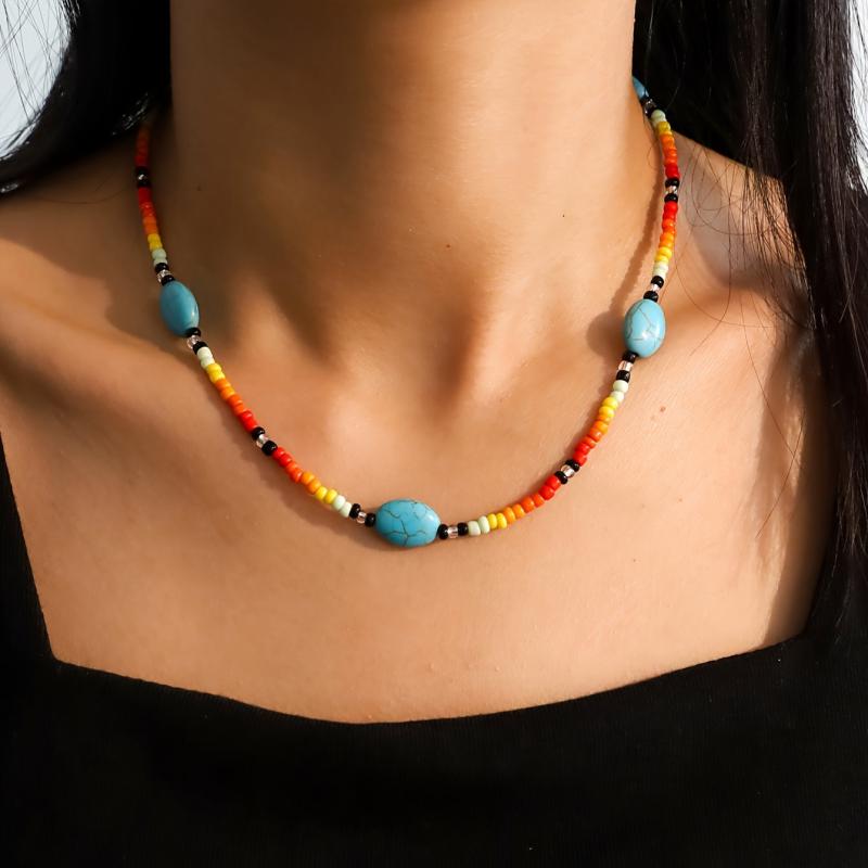 Make a statement with this elegant green aventurine necklace. This minimalist jewelry piece is perfect for adding a touch of bohemian style to your outfit.