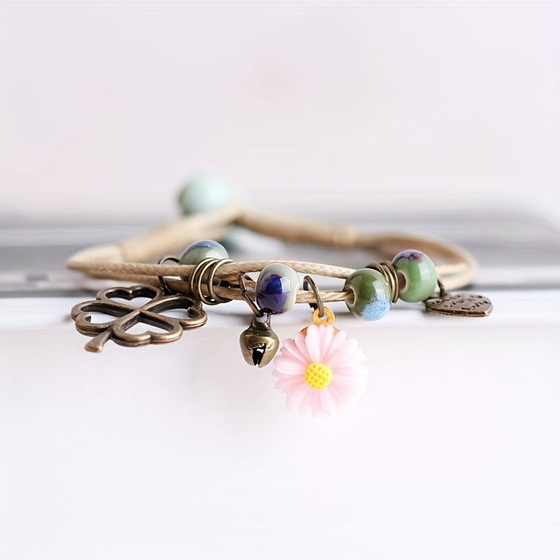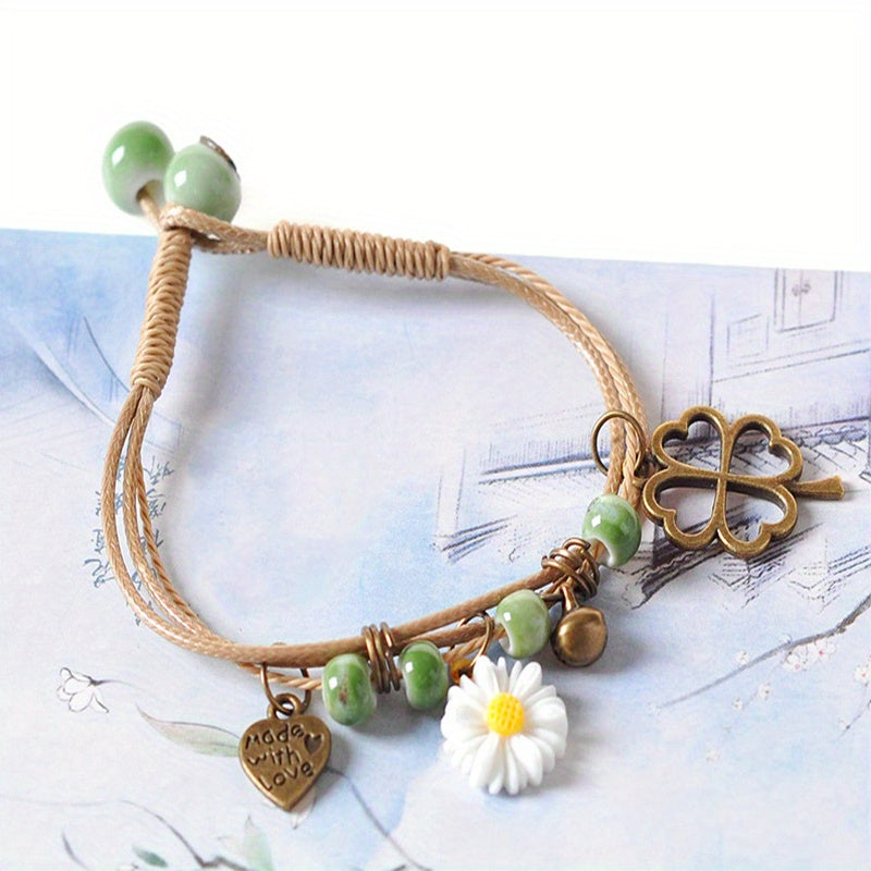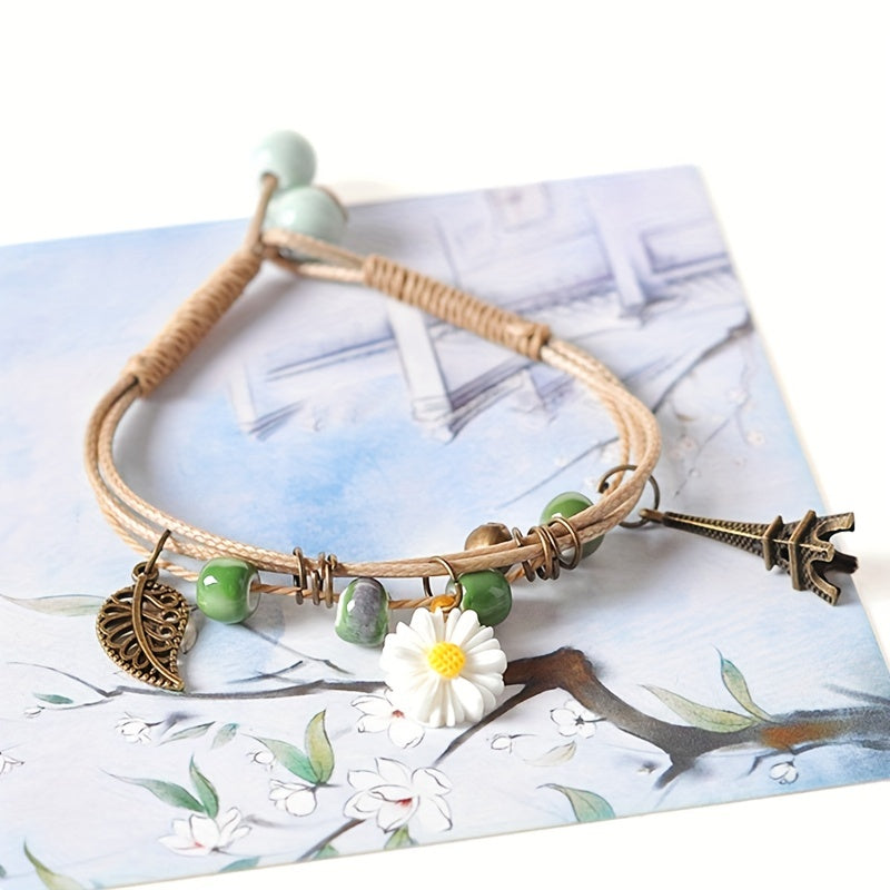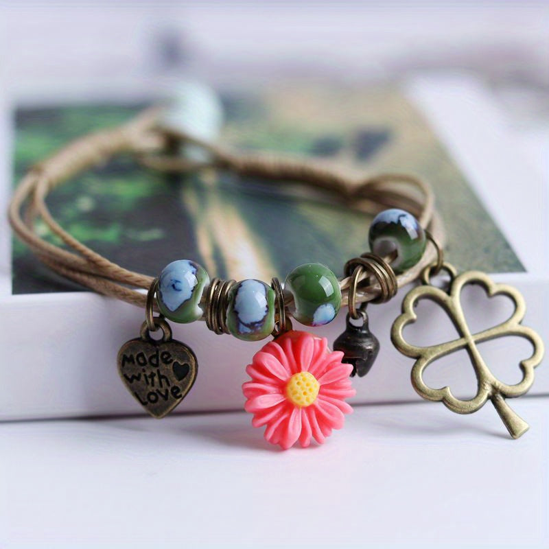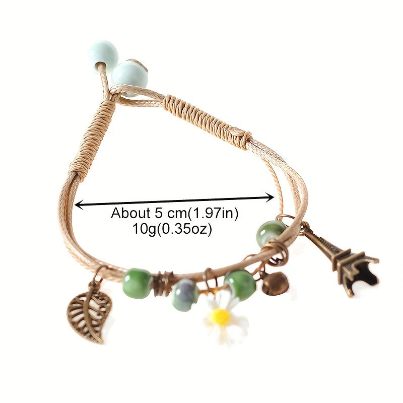 This vintage boho style bracelet set features a flower shape pendant and braided design. Perfect for couples or friends.