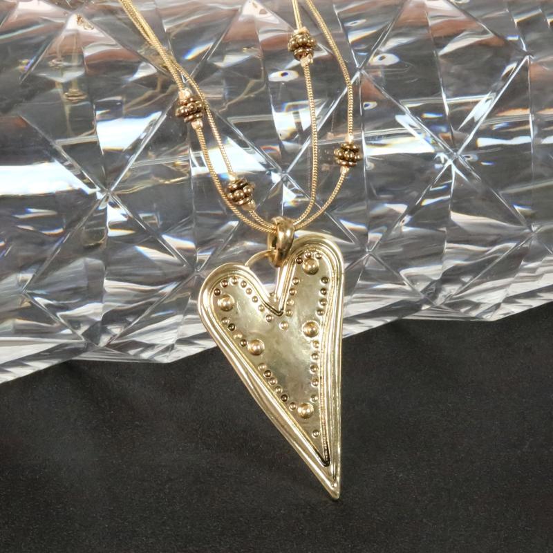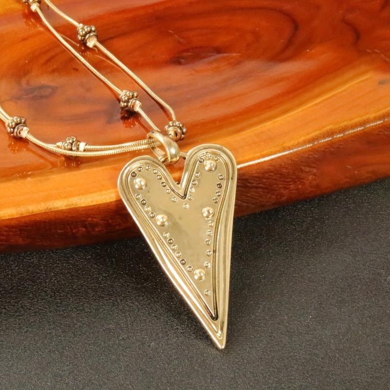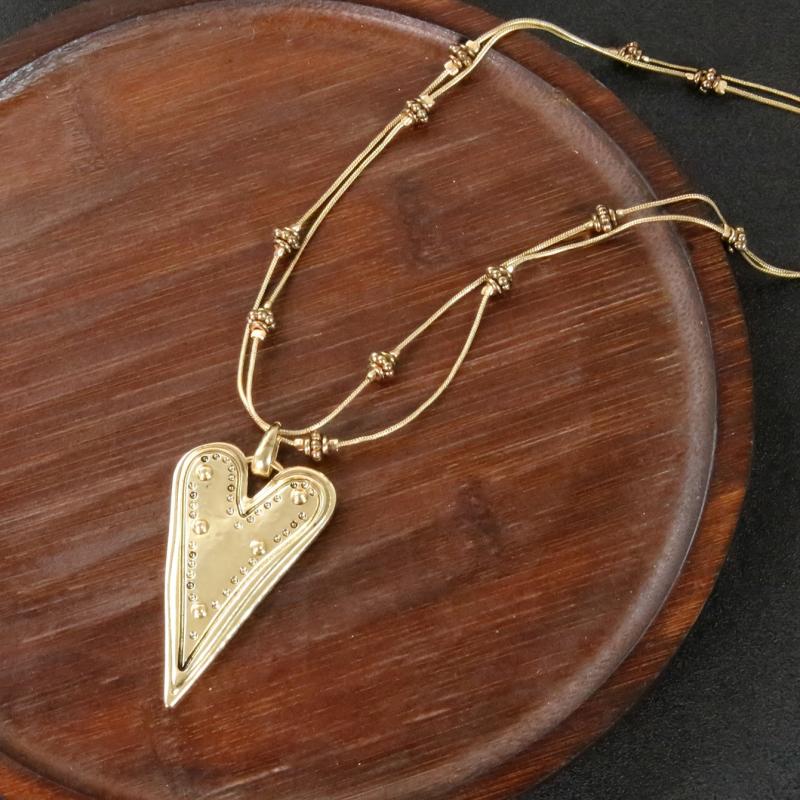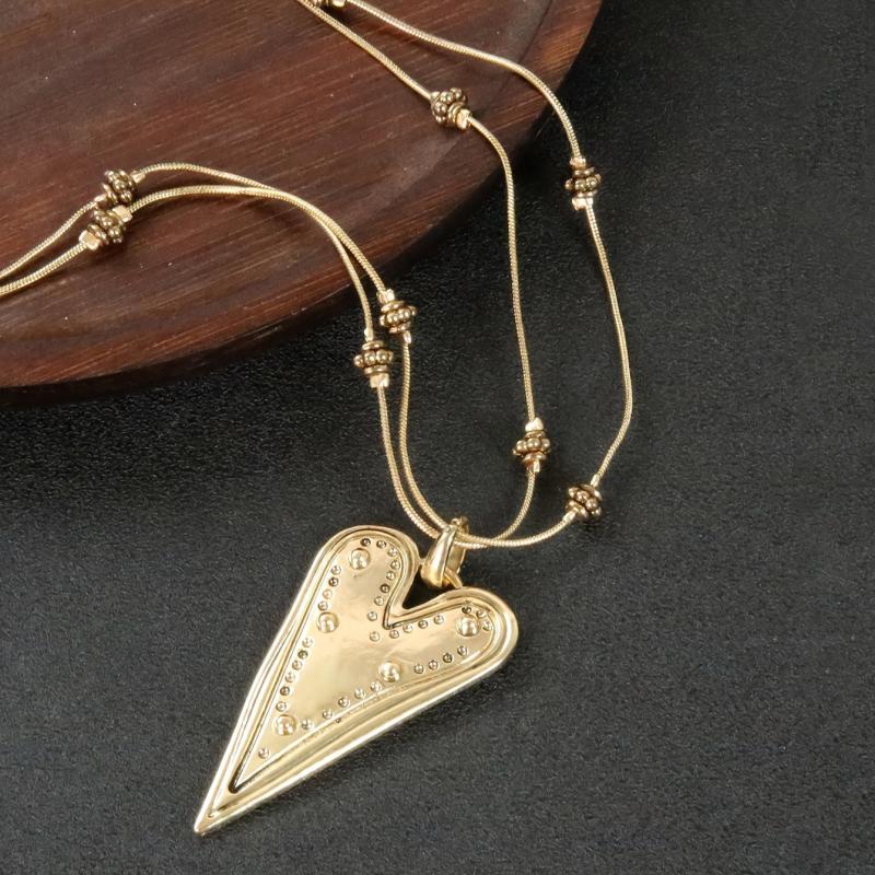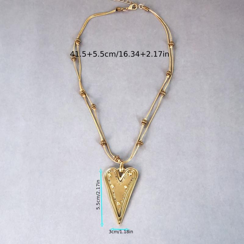This vintage boho heart pendant necklace features a double layer chain made of zinc alloy. It's ideal for daily wear and gifting, perfect for carnival celebration. Suitable for both men and women.