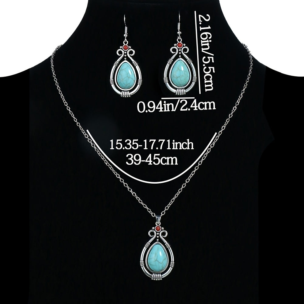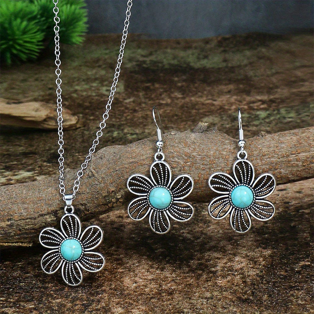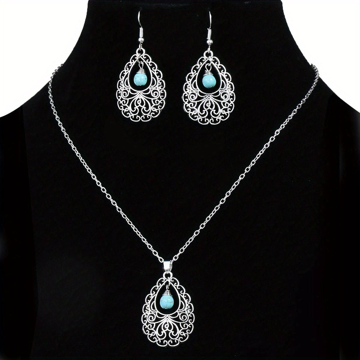 Add a touch of bohemian style with this 3-piece set. Featuring a hollow design, silver accents, and turquoise drops, this set makes a perfect gift for a friend or a treat for yourself.