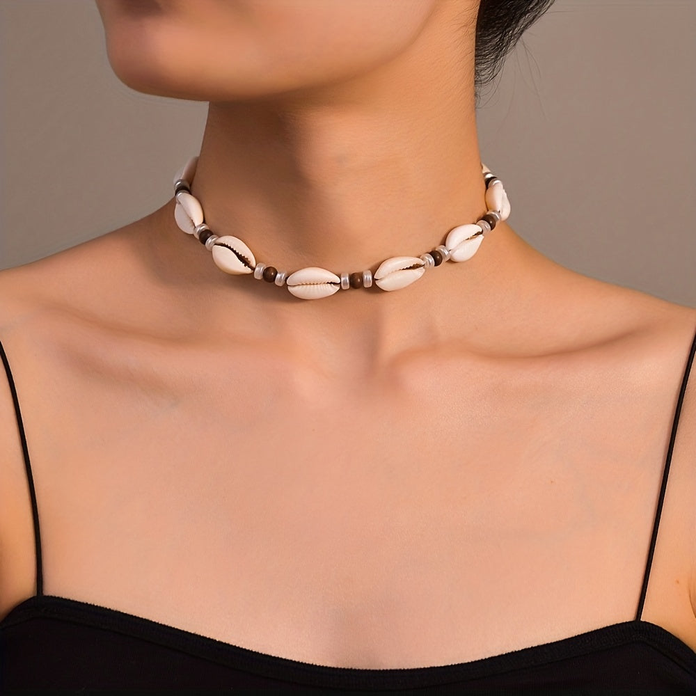 Add a touch of summer beach style to your outfit with this vintage braided shell necklace. It's perfect for casual or dressy looks.