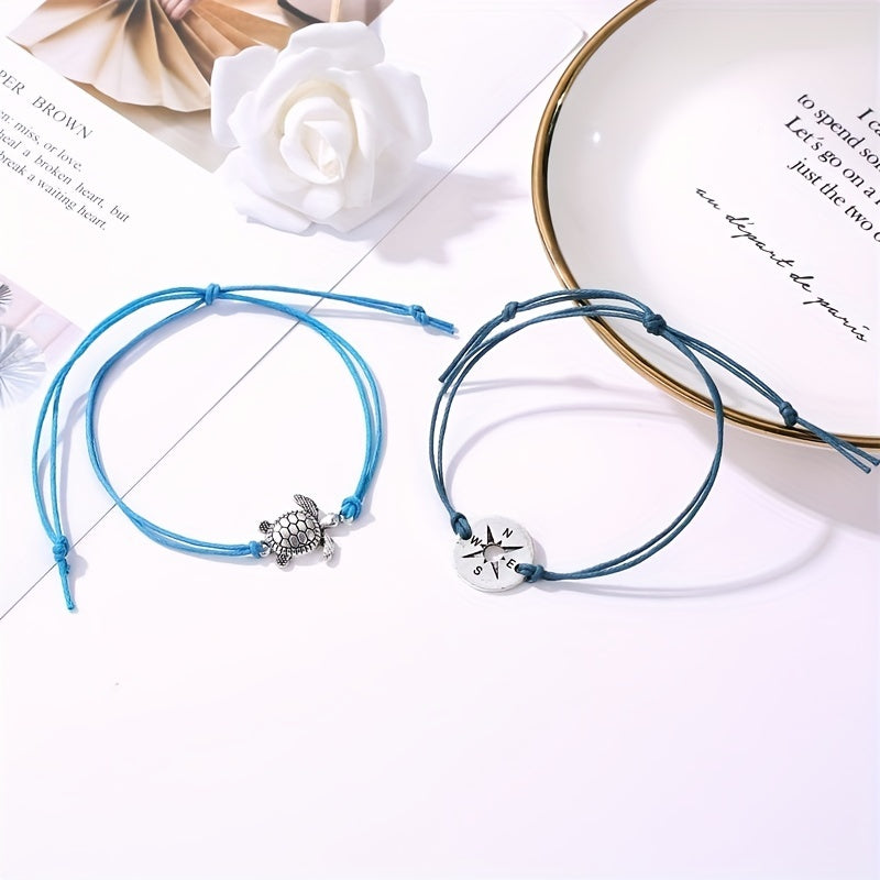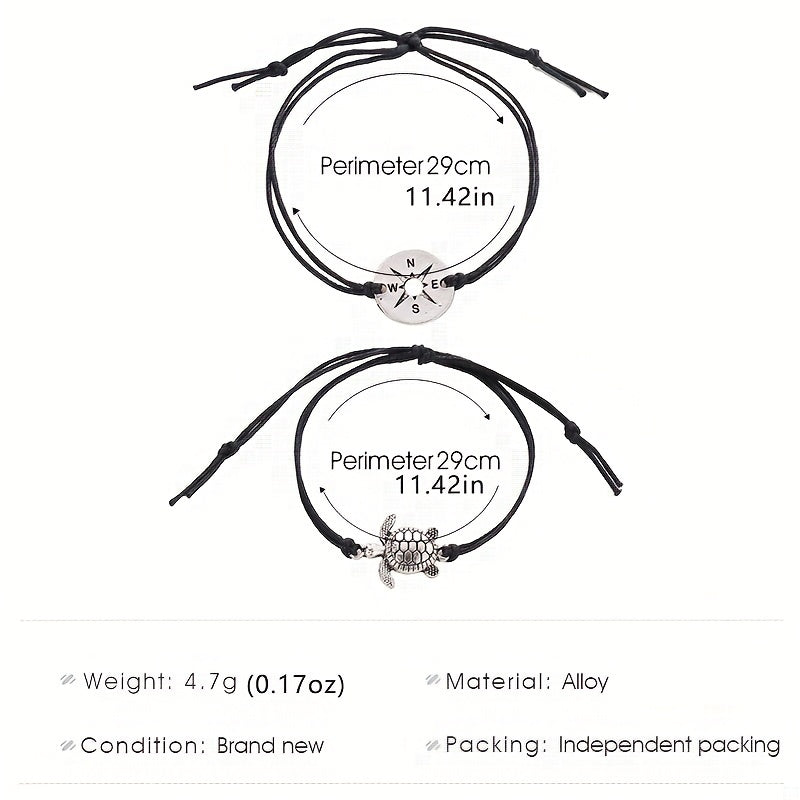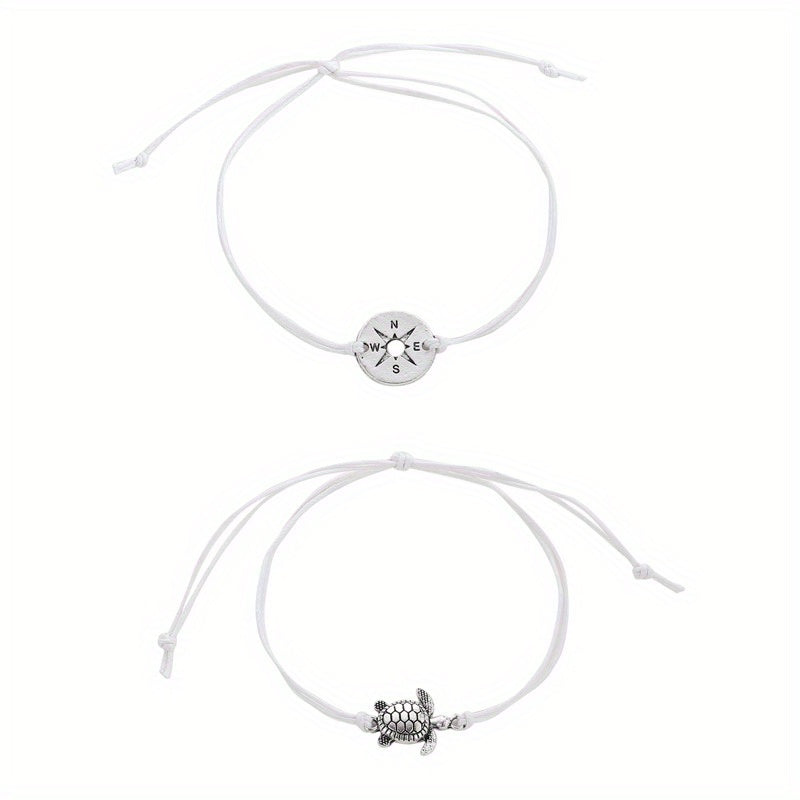 Embrace a bohemian style with this vintage silver turtle bracelet featuring a compass pendant. Perfect for men and women who love beach-inspired jewelry.