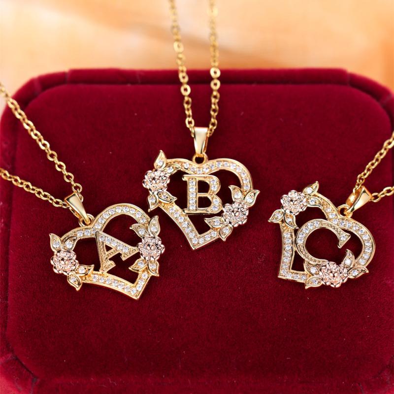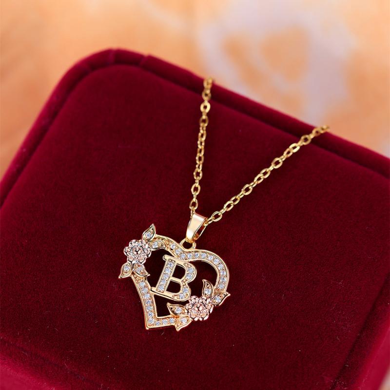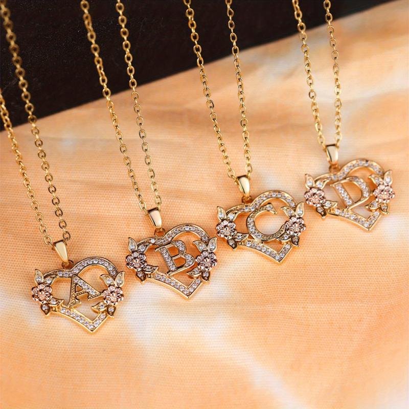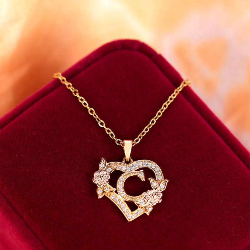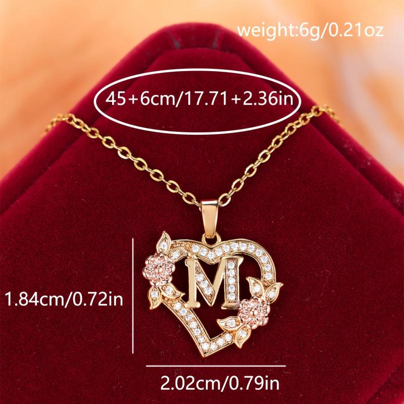 This exquisite heart-shaped pendant necklace features a rose flower design with synthetic zirconia accents. Ideal for weddings, banquets, or as a Valentine's gift for women.
