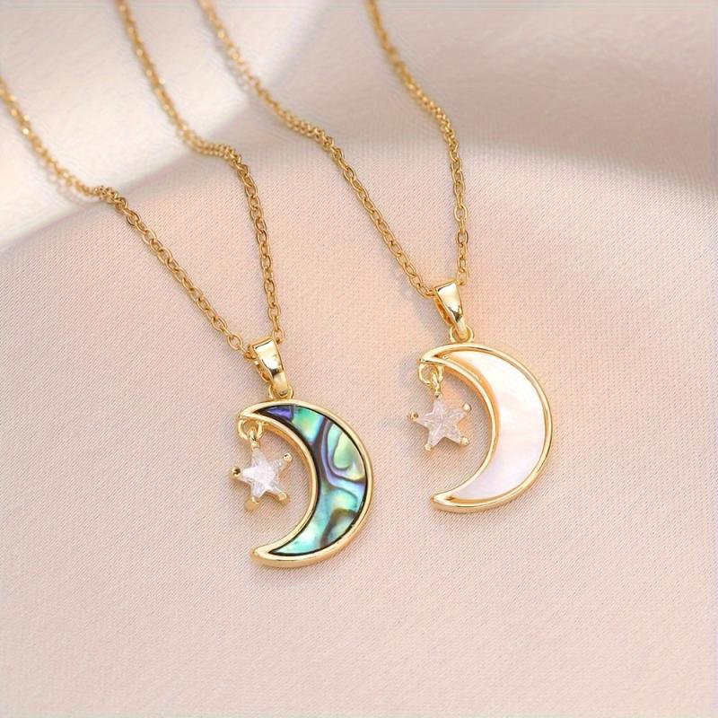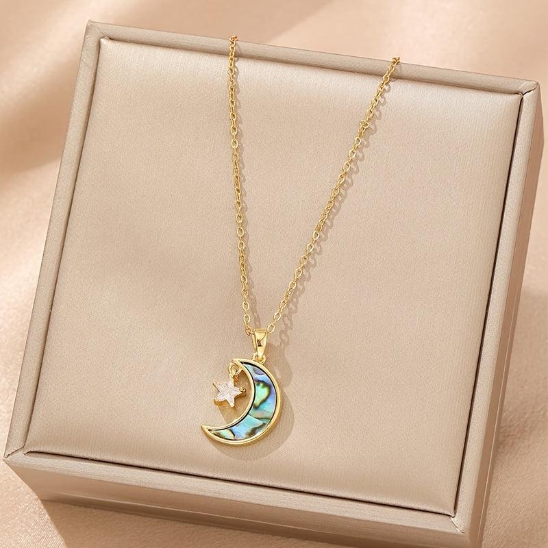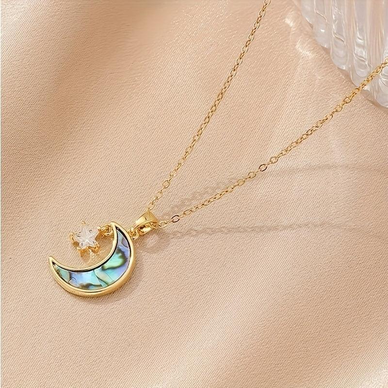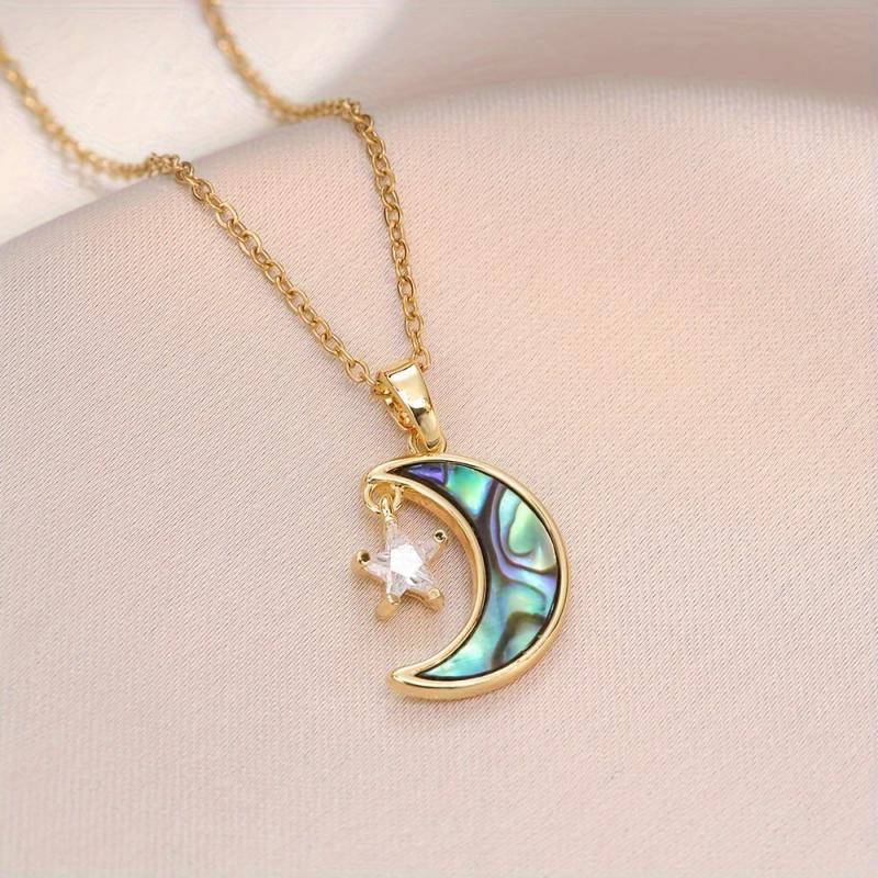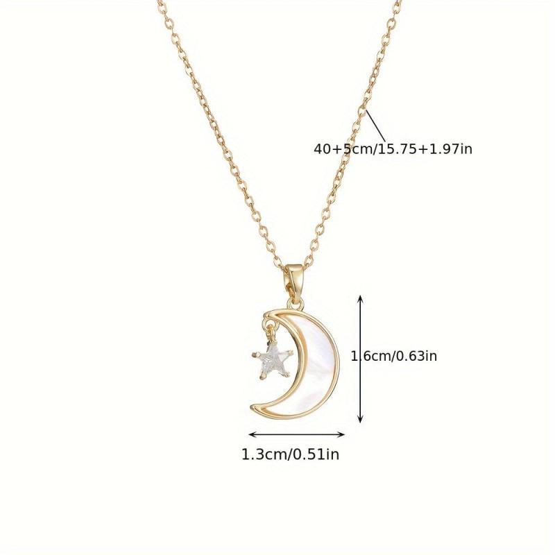 Elevate your style with this vintage vacation style necklace featuring a crescent moon and star pendant adorned with rhinestones. Perfect for women who love unique jewelry.