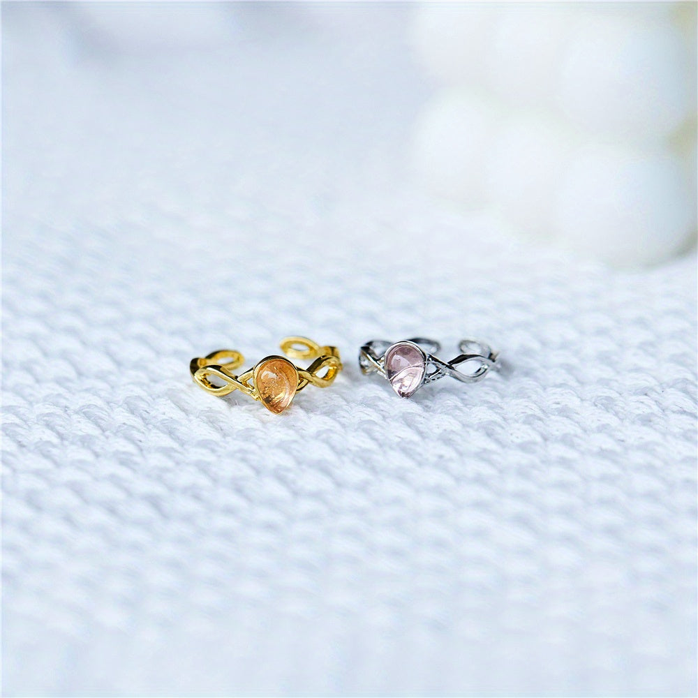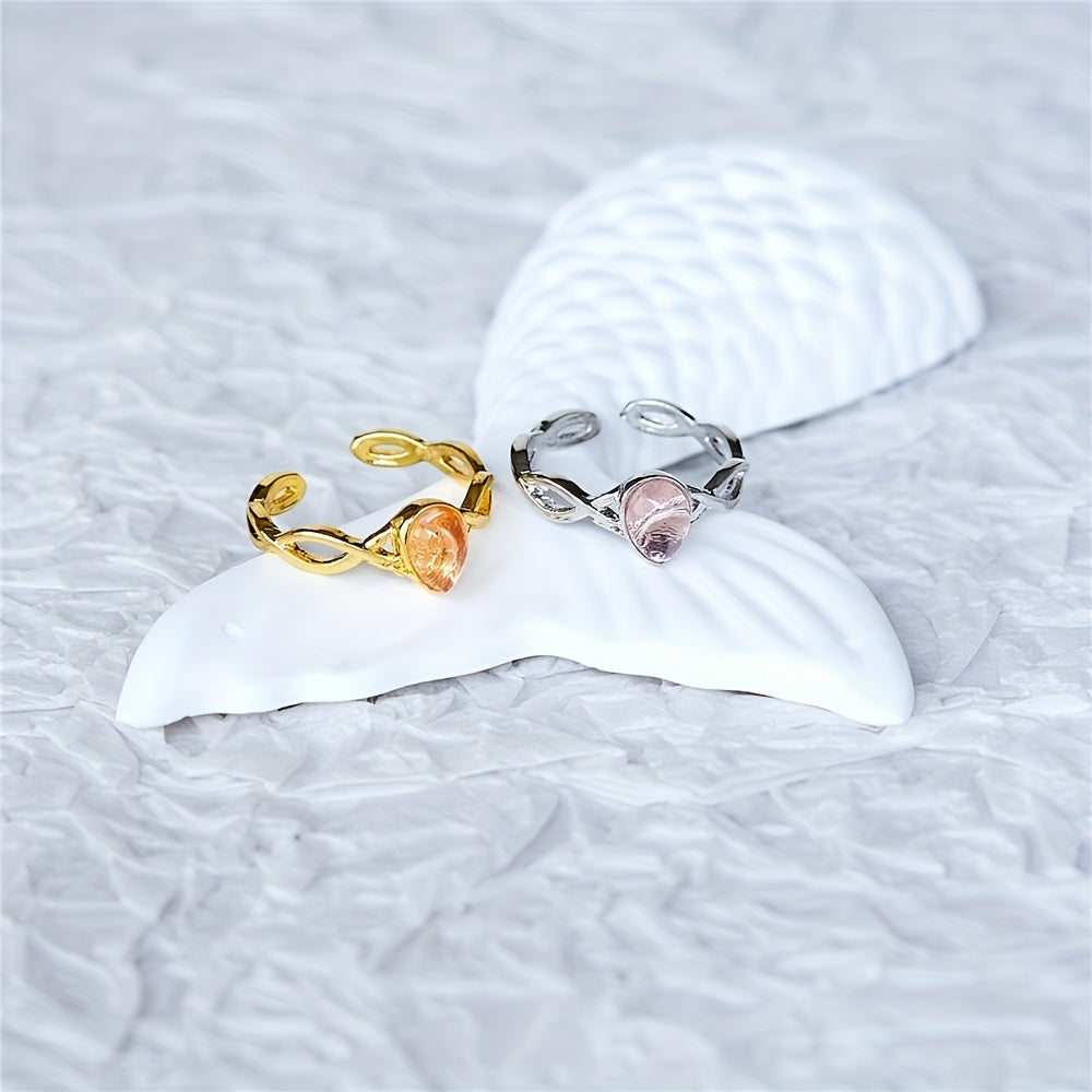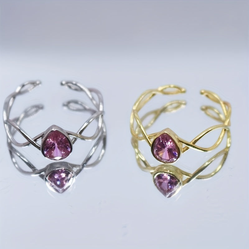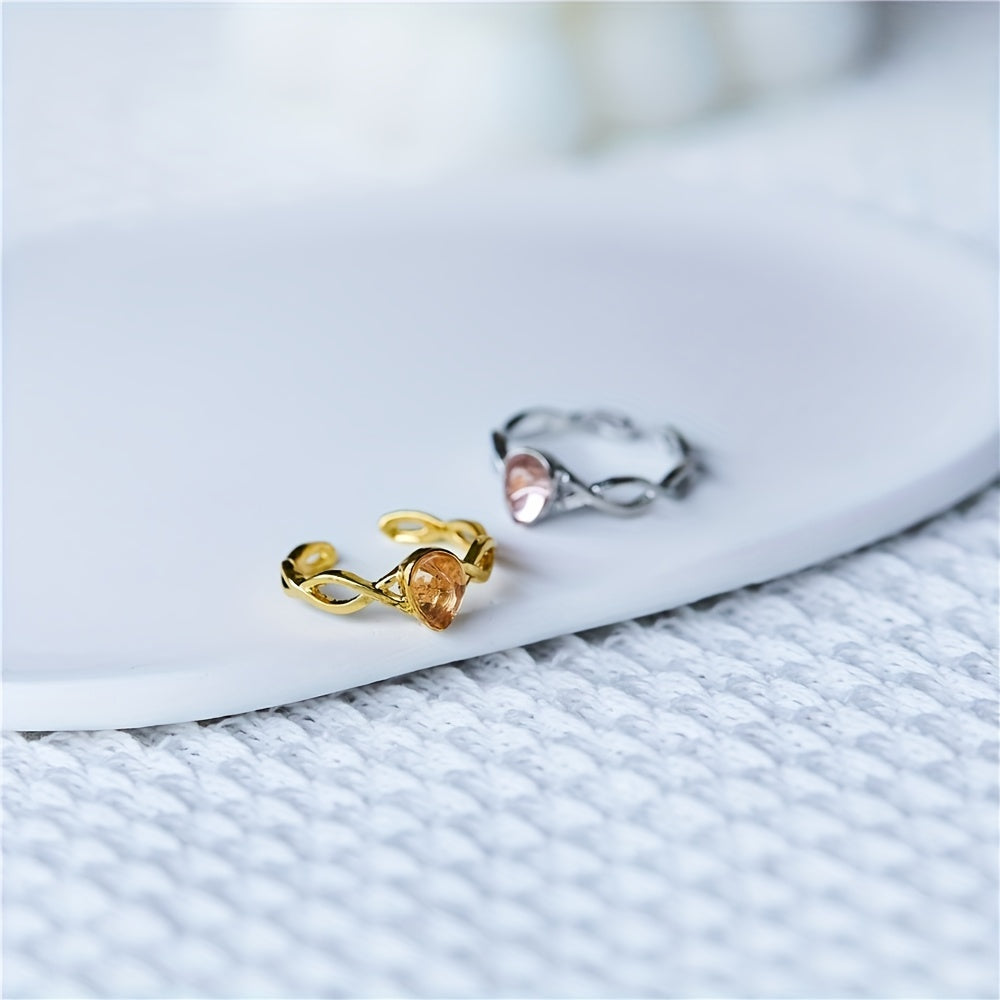 This vintage cuff ring features an intertwined band with a teardrop-shaped zircon in the middle. Choose from two classic colors to match your daily outfits.