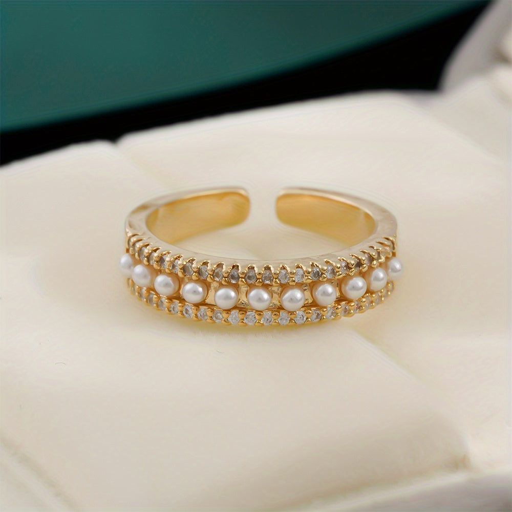 This vintage cuff ring is a perfect accessory to match your daily outfits or add a dainty touch to your party look. It features micro rhinestones and milky stones for a unique and eye-catching design.