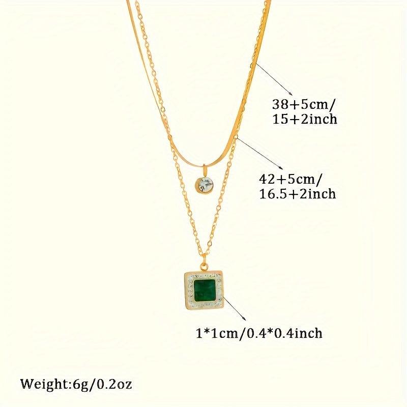 This stainless steel necklace features a square pendant with rhinestone detail. It is perfect for daily wear and parties.