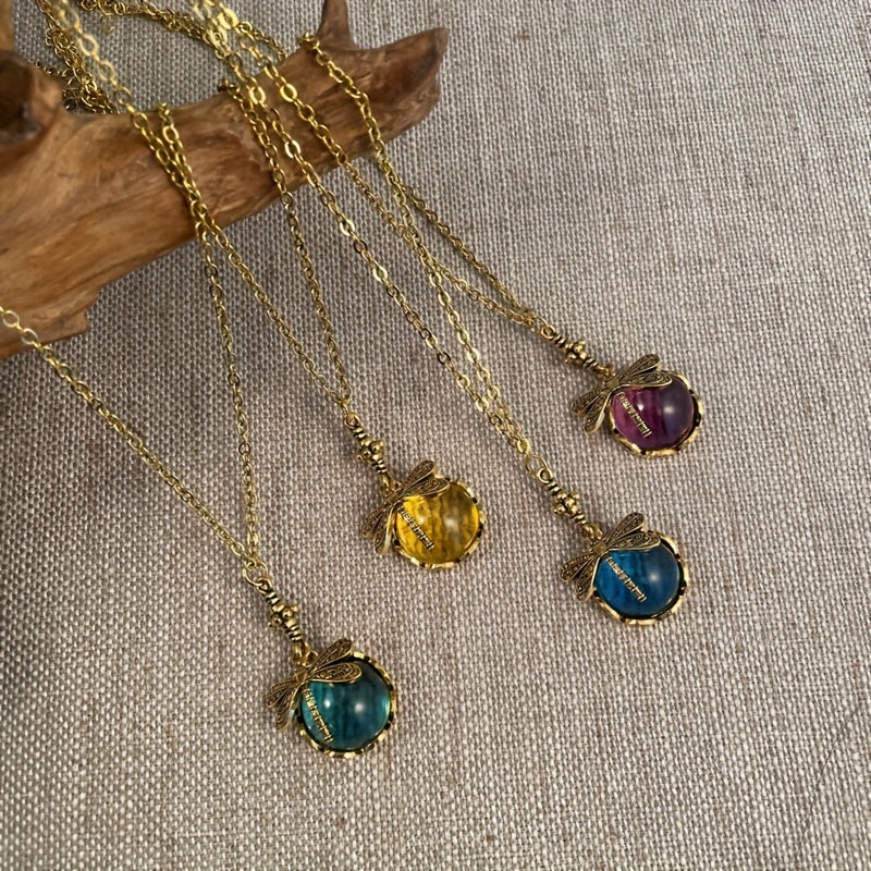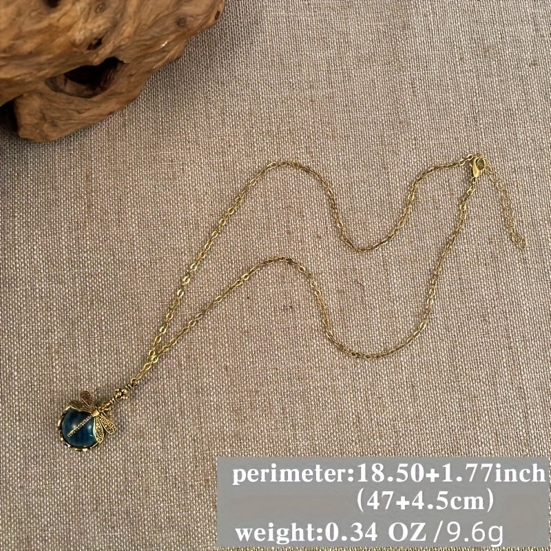 Add a touch of unique style to your look with this vintage bronze hand carved dragonfly pendant necklace. The necklace features a round faux green stone for an ethnic vibe.