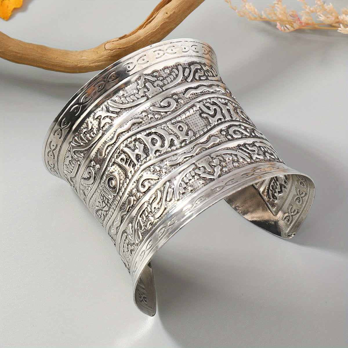 This retro bracelet features an intricate elephant pattern. Made of silver plated material, it adds a touch of vintage charm to your outfit.