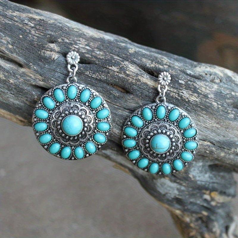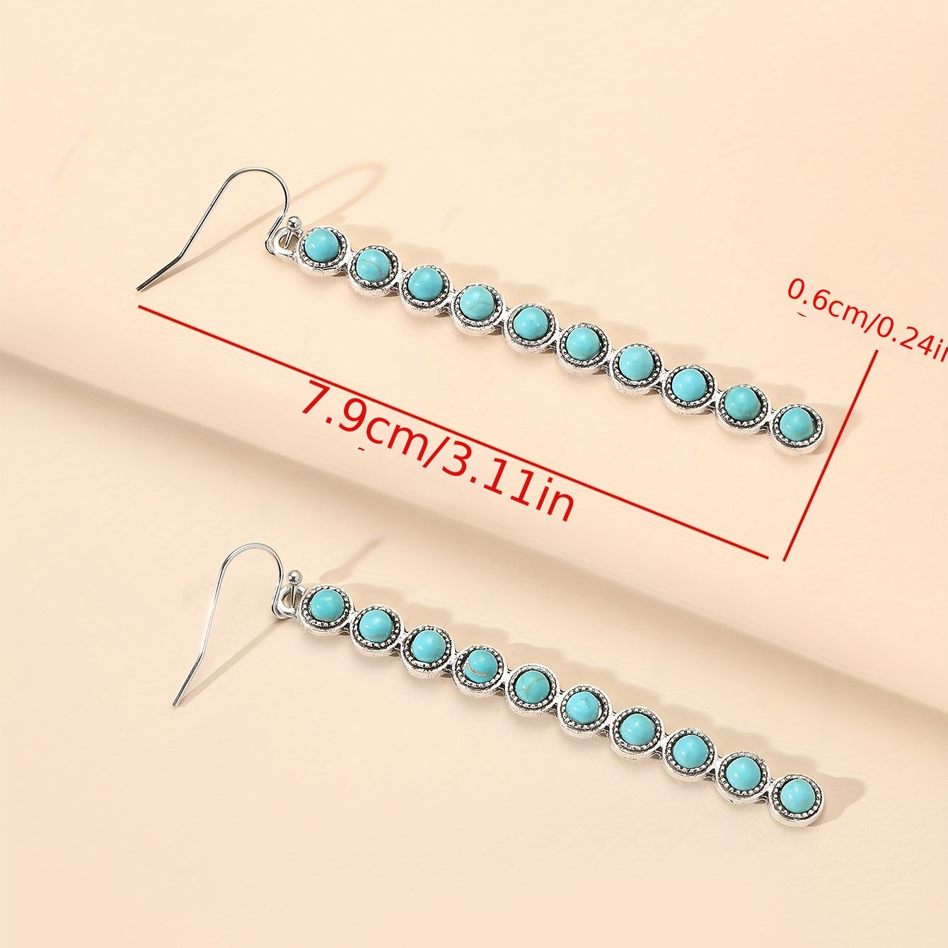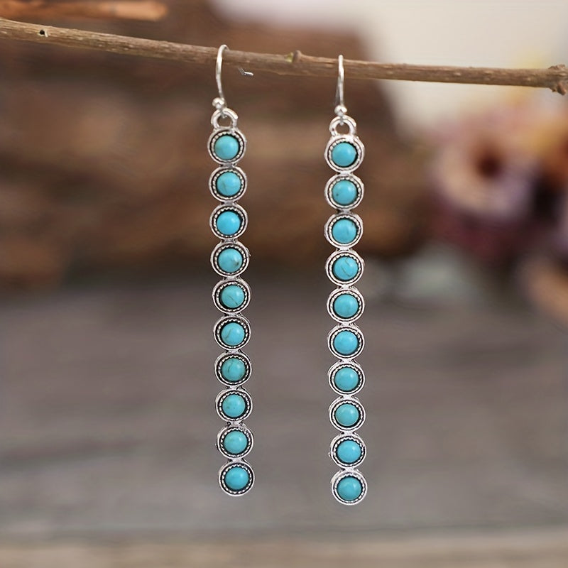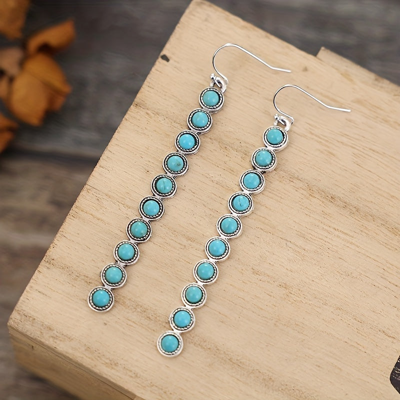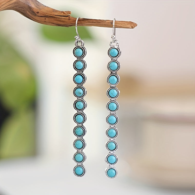Elevate your style with these stunning vintage-inspired drop earrings featuring faux turquoise accents and long tassel dangles. Perfect for adding a touch of bohemian flair to any outfit.