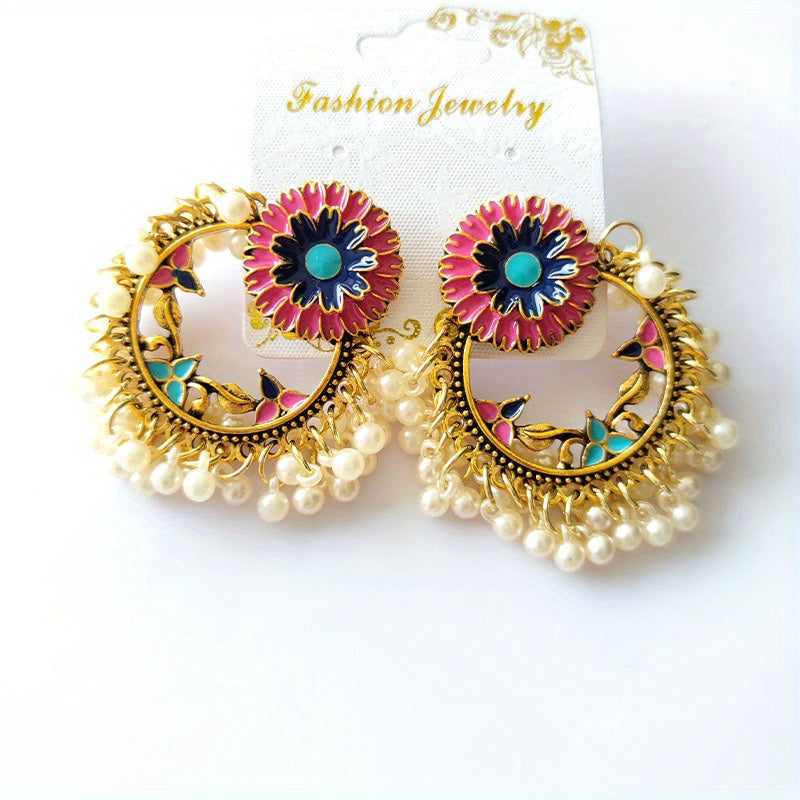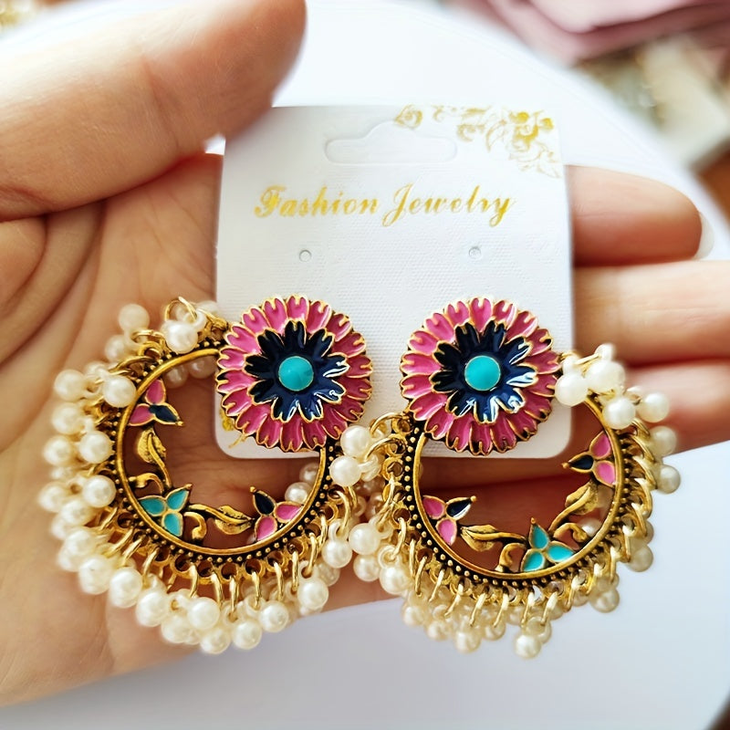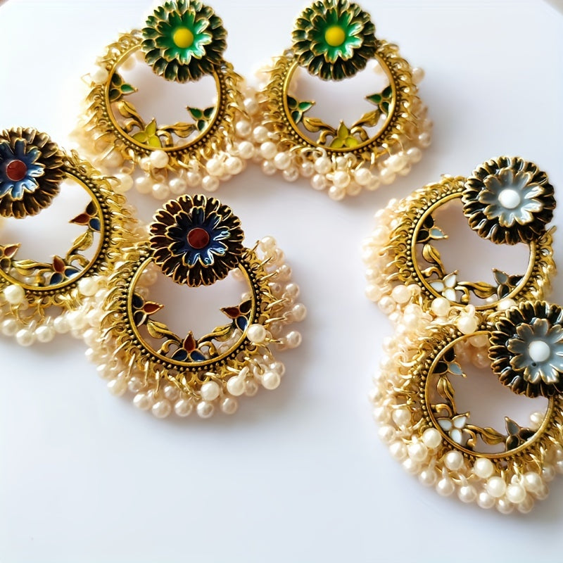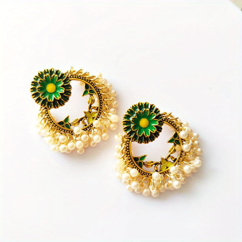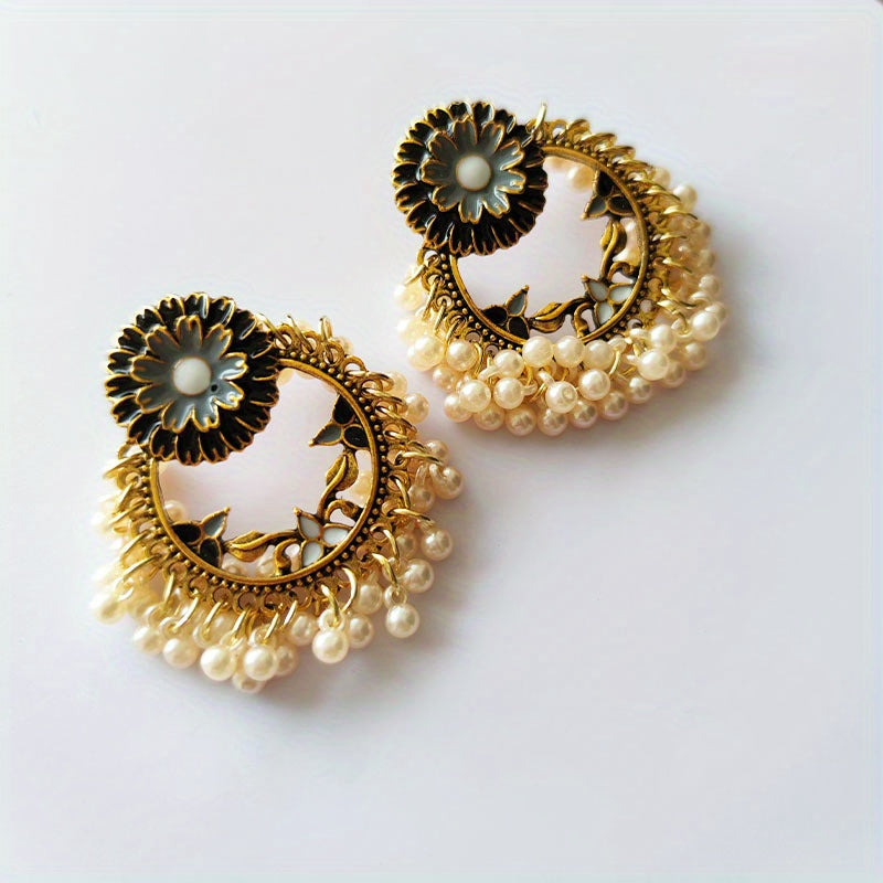 These bohemian vintage flower dangle earrings with rice beads are a perfect accessory. Made of alloy with 14K plating, these earrings make a lovely gift for any female.